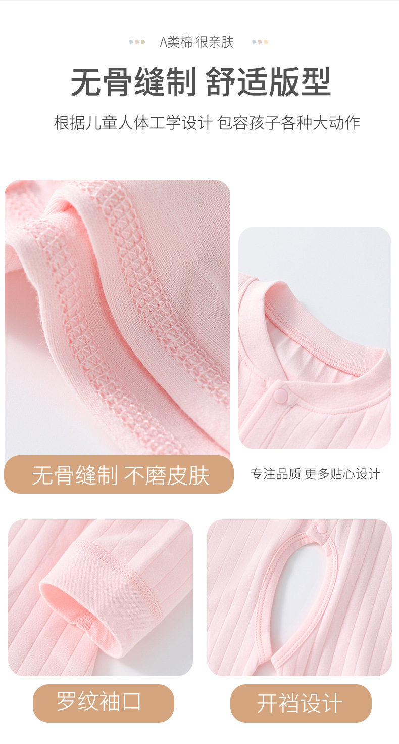 클래스 A 아기 봄과 가을 얇은 오픈 점프 수트 신생아 긴팔 바지 면 잠옷 아기 통기성 등산 세트
