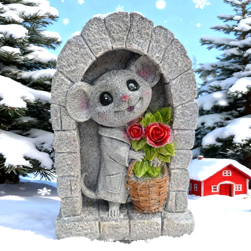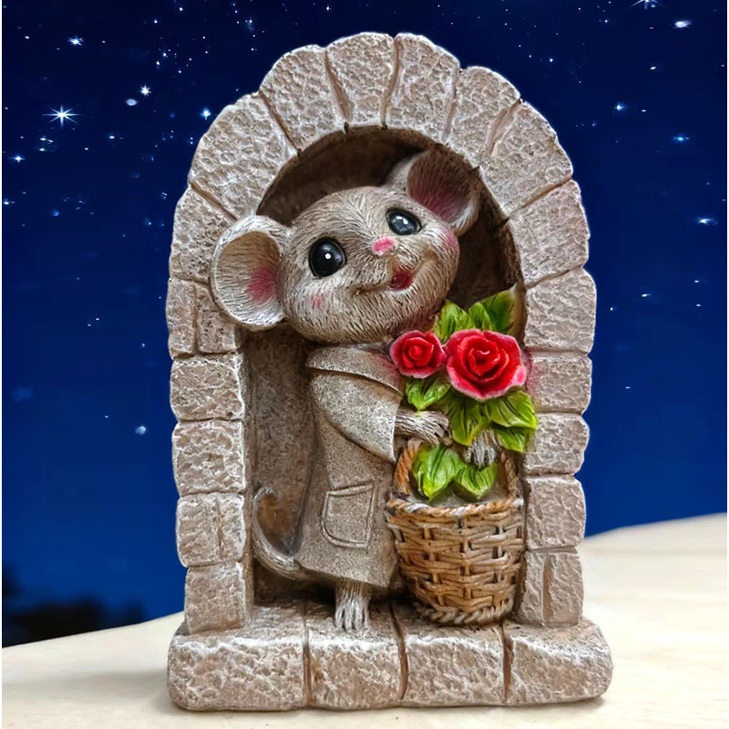 국경을 넘는 신제품 쥐 문 모형 수제 석조 정원 장식 미니어처 레진 공예품 장식품