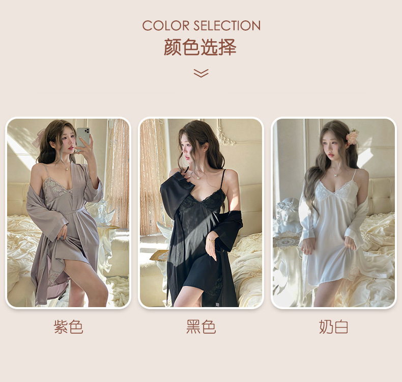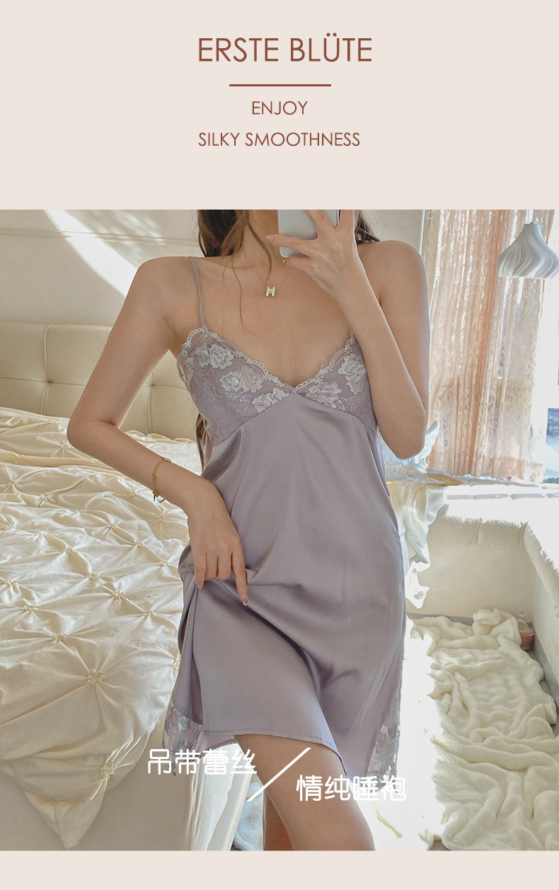 2025 새로운 섹시한 나이트 드레스 슬링 여성 여름 아이스 실크 봄과 가을 파자마 섹시한 유혹 속옷 홈 크로스 테두리스토어 가기
