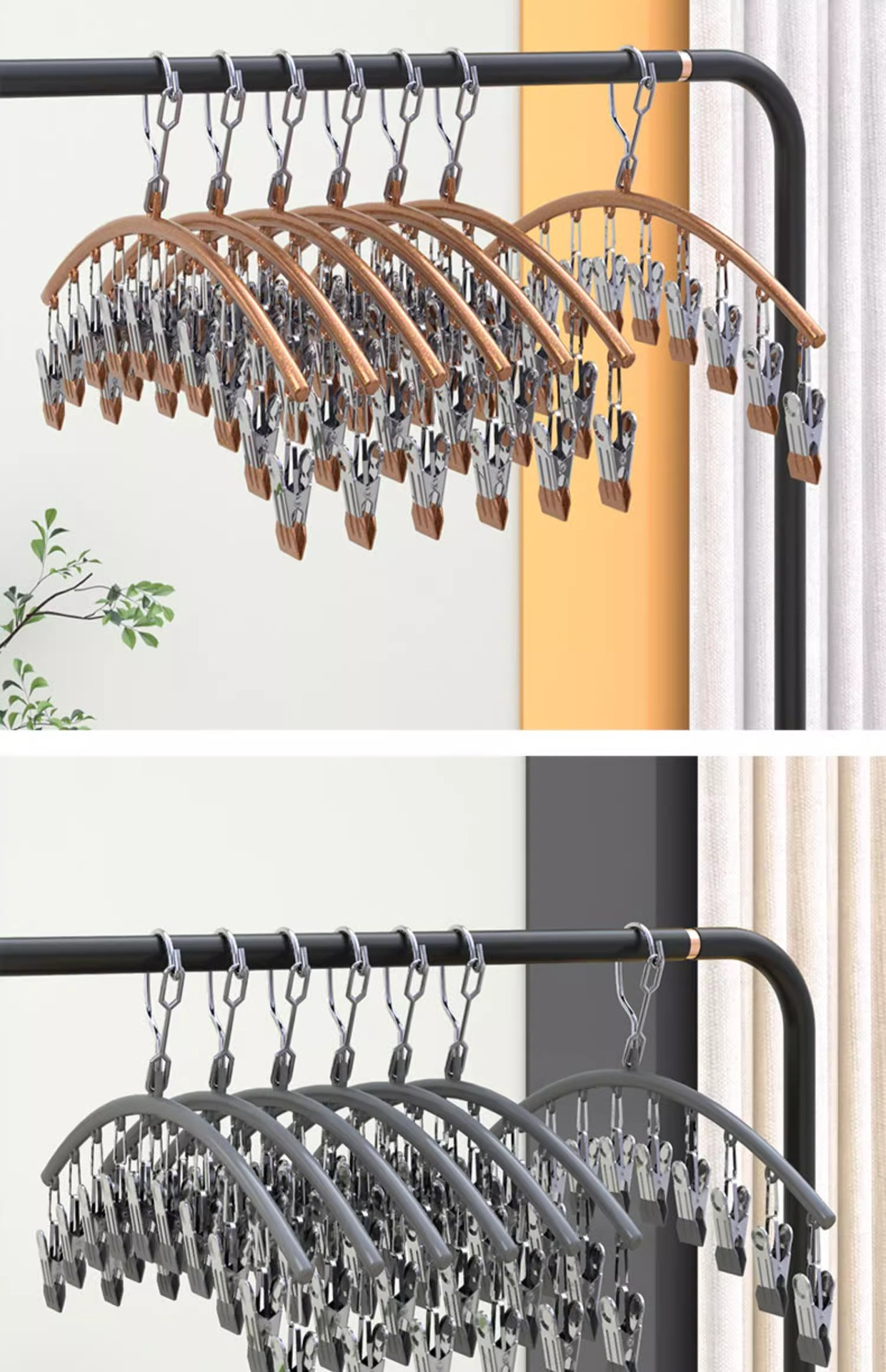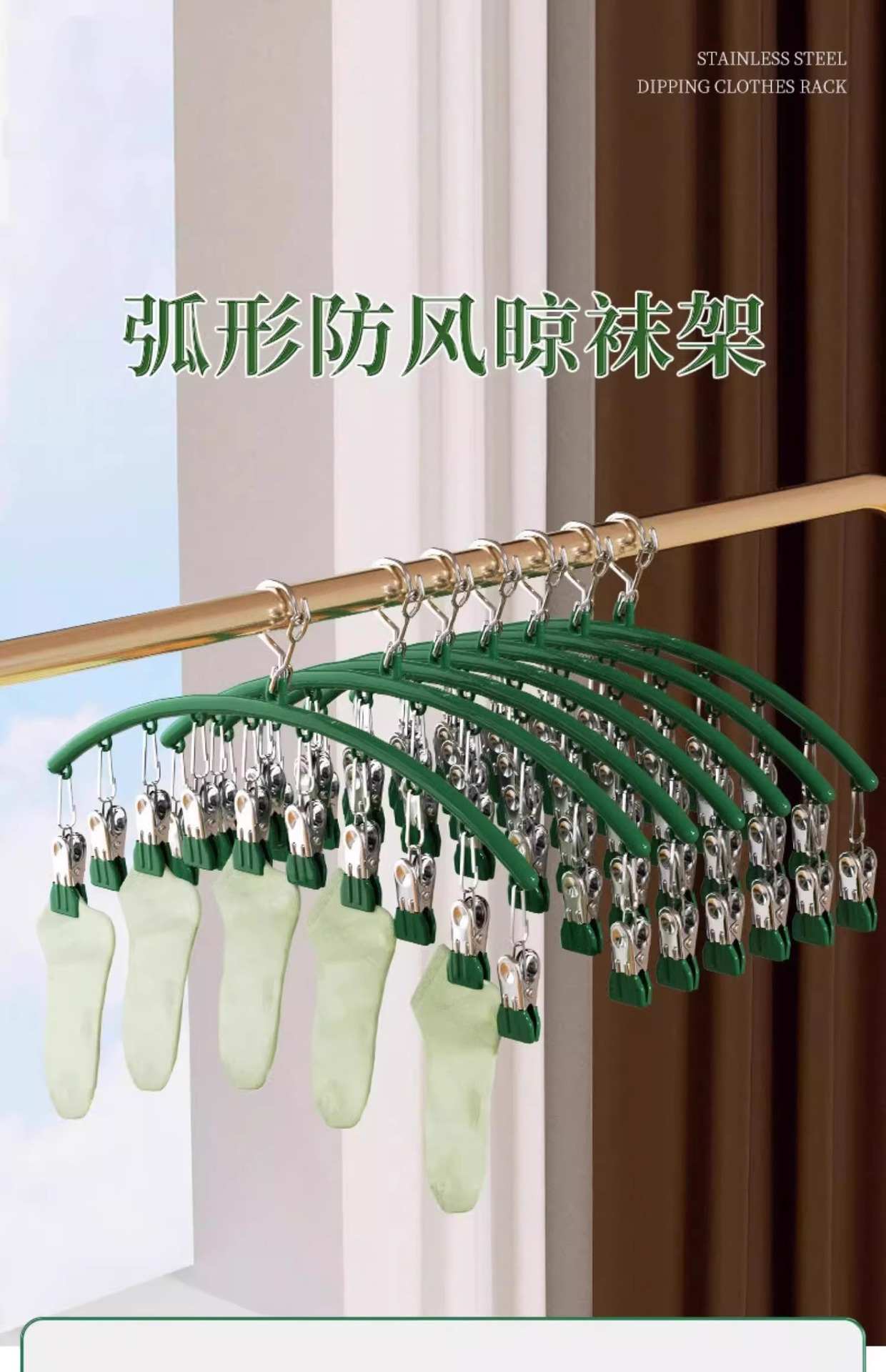 • 스테인레스 스틸 곡선형 10클립 양말 클립-라이트 럭셔리 그린 [1팩]