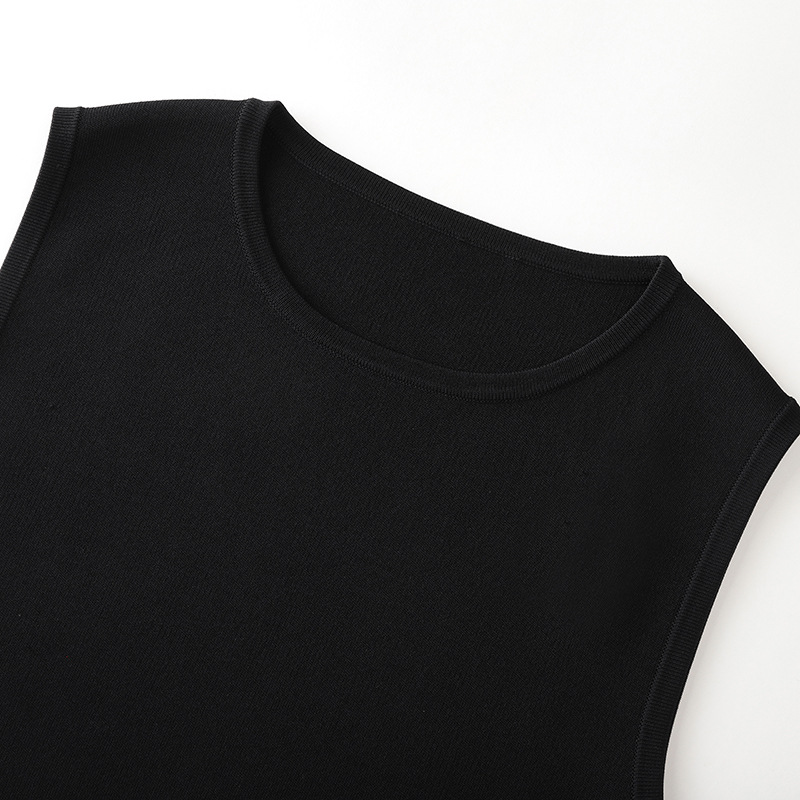 국경 간 대외 무역 고급 우아한 레이디 블랙 라운드 넥 민소매 탑 중공 니트 스커트 패션 캐주얼 슈트스토어 가기