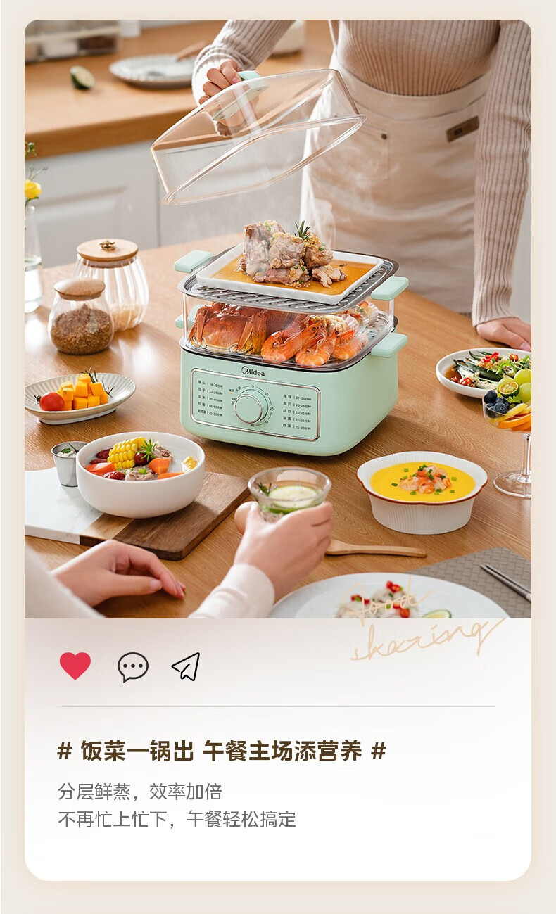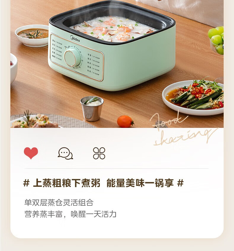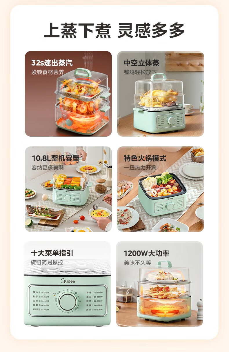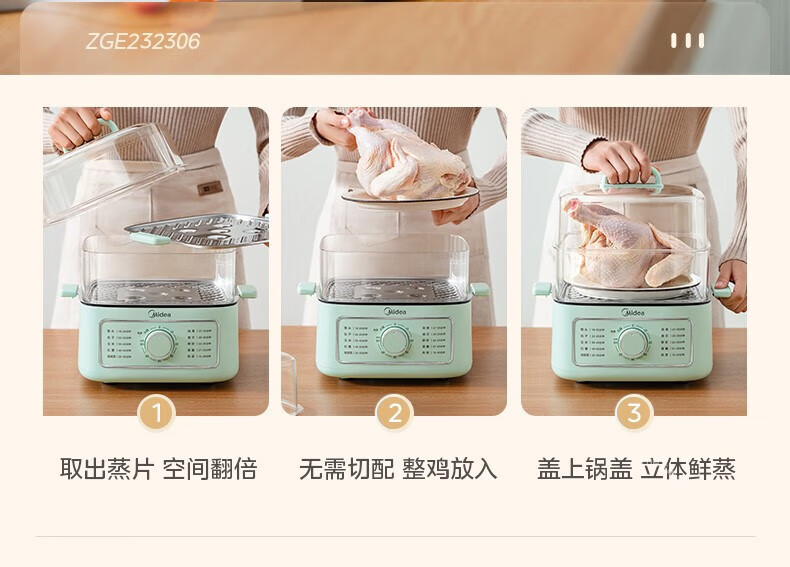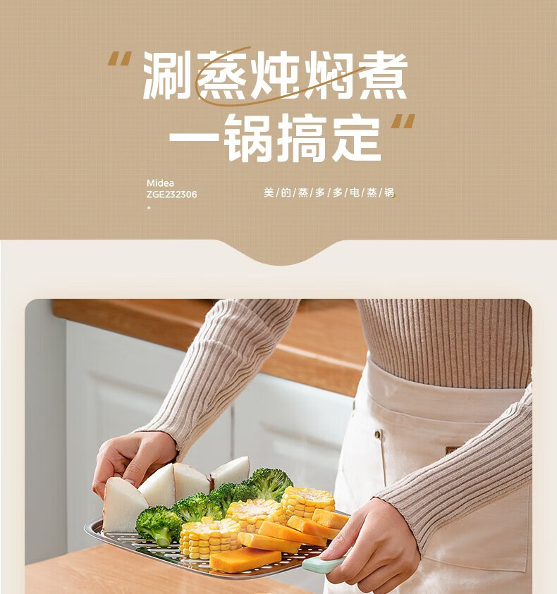 Midea 전기 기선 가정용 전기 요리 냄비 대용량 다층 다기능 냄비 요리 통합 ZGE232306스토어 가기