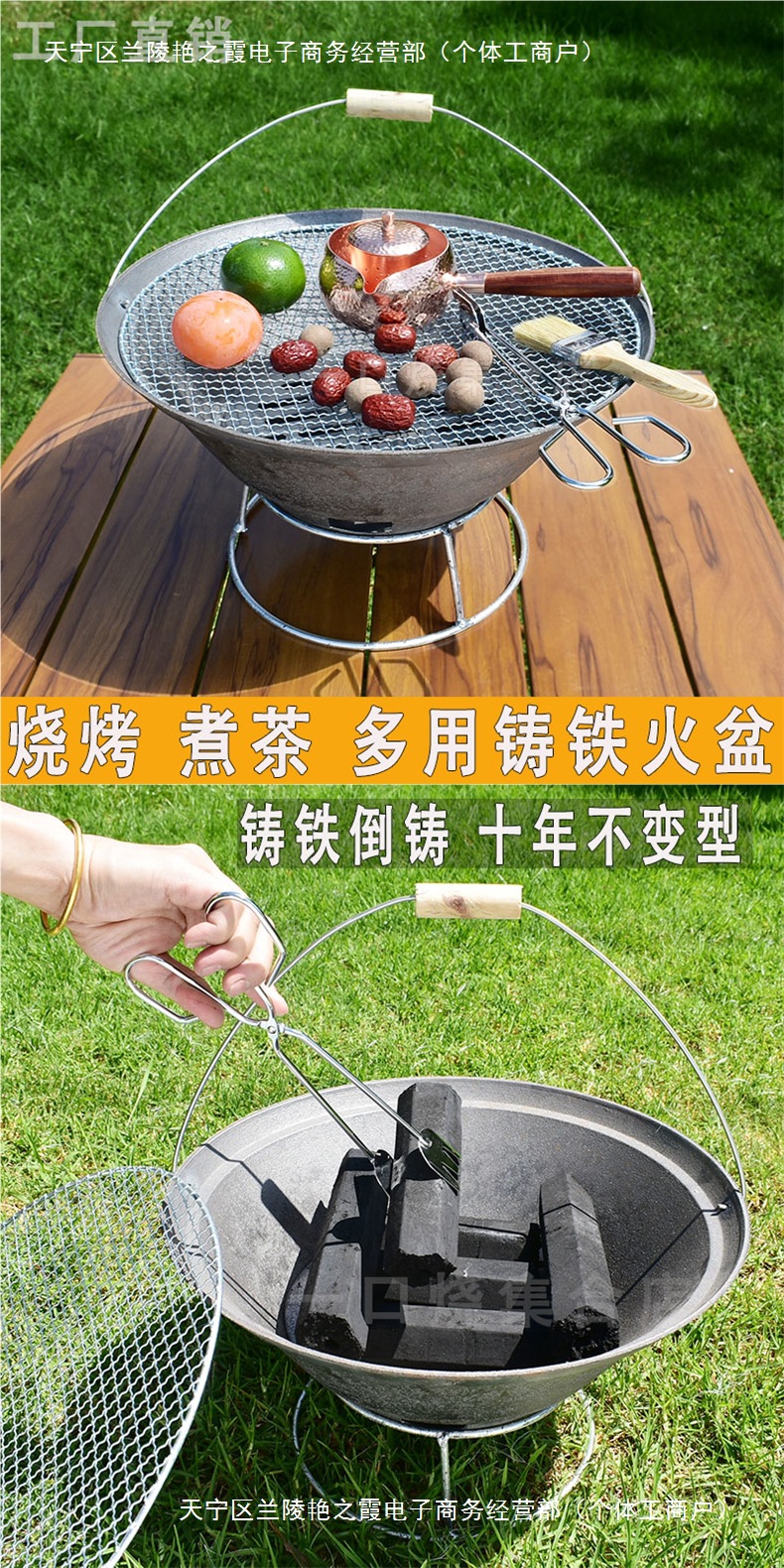 • 소형 숯불 난로 + 손잡이 그릴, 직경 25cm, 클립 포함