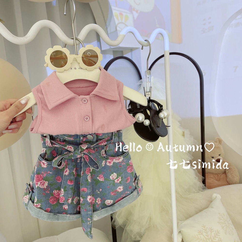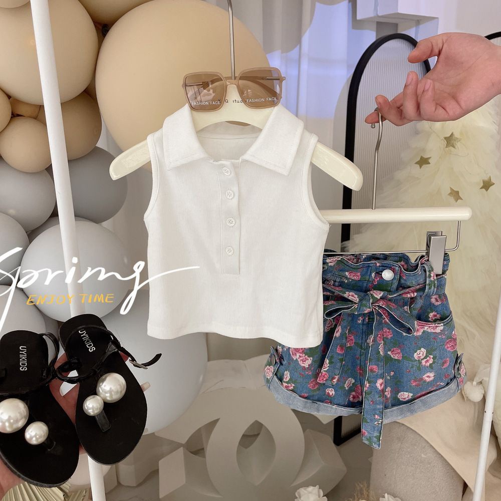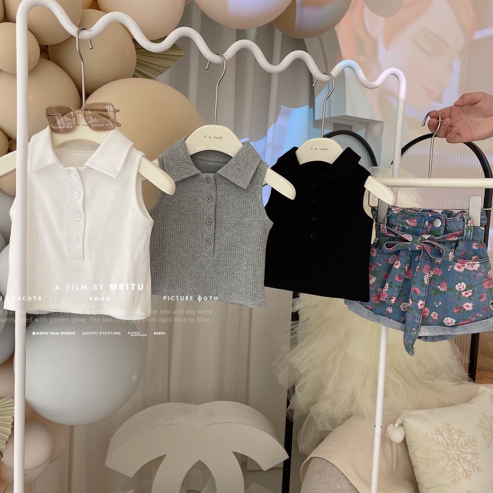 여자 여름 조끼 아기의 서양식 어린이 유행 한국 스타일 유행 짧은 라르 민소매 폴로 셔츠 탑스토어 가기