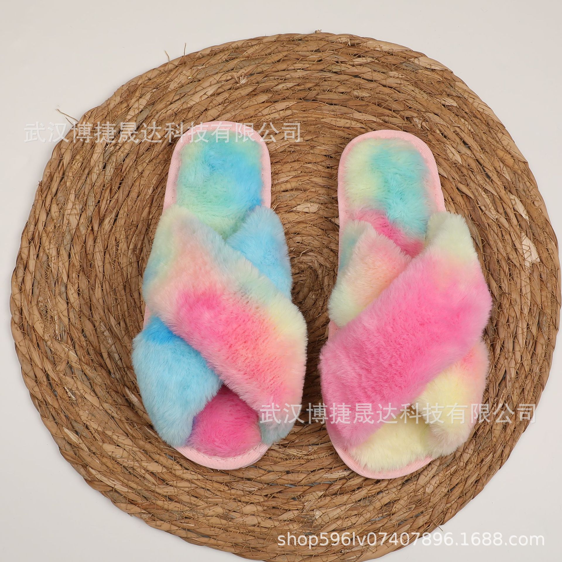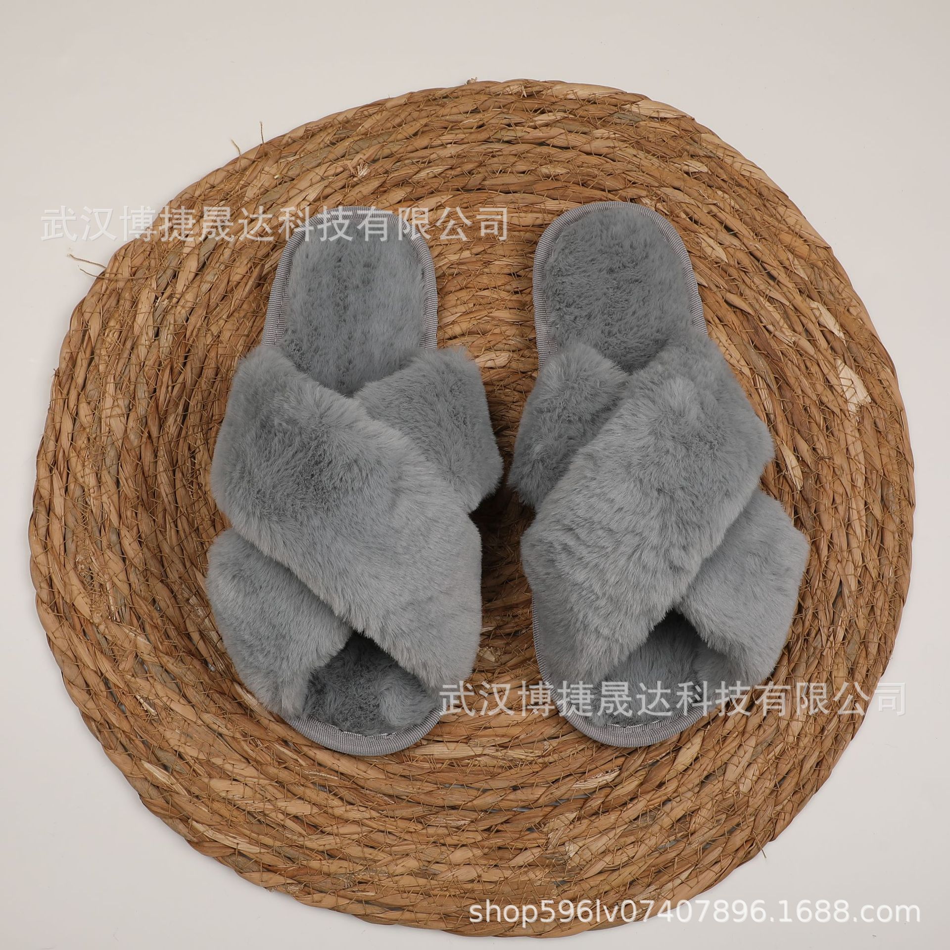 국경 간 인기 etsy Amazon 크로스 모피 슬리퍼 여성용 플랫 바닥 홈 바닥 슬리퍼 여성용 오픈 토 코튼 슬리퍼스토어 가기