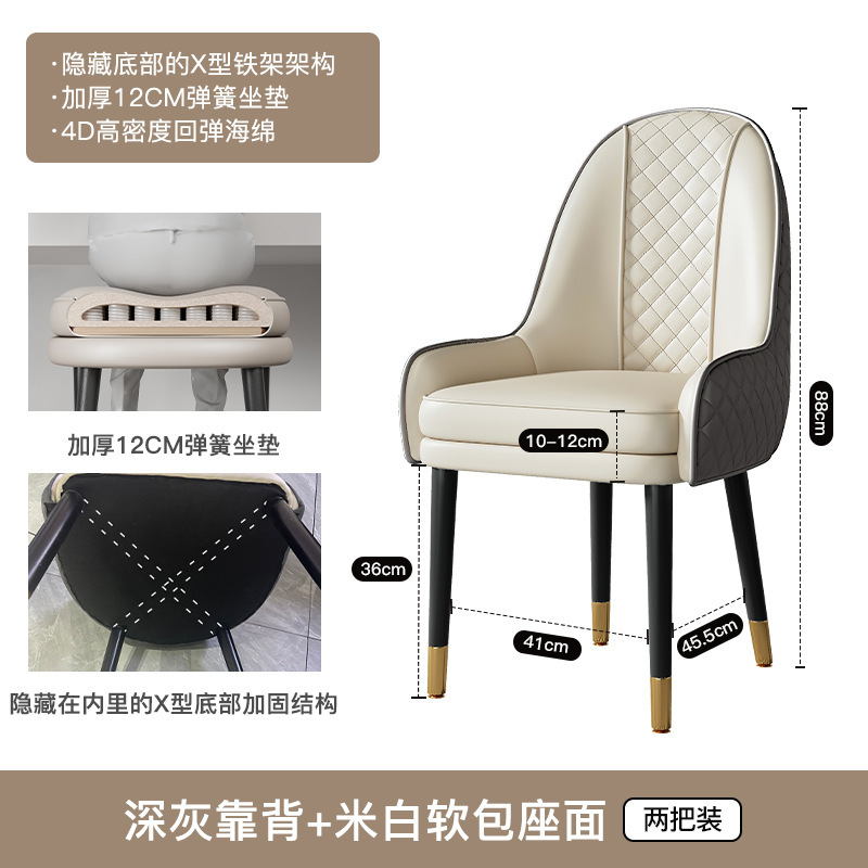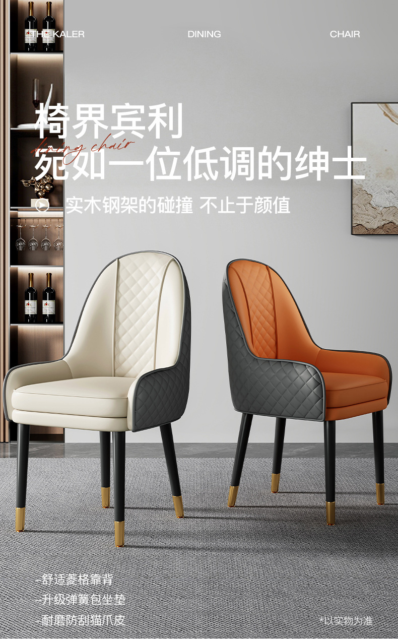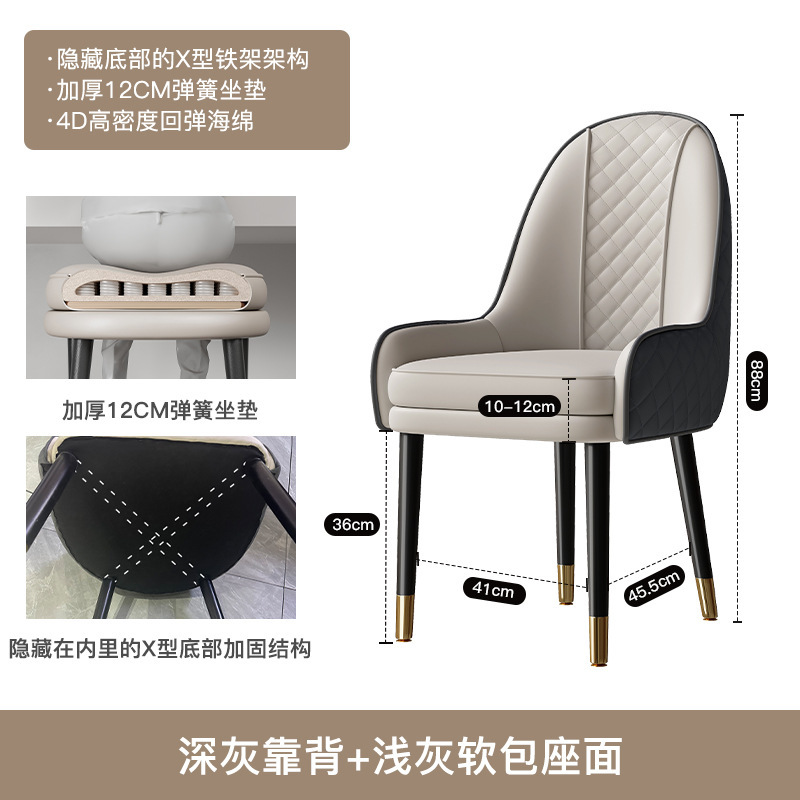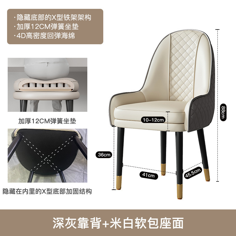 简约现代餐桌椅子酒店餐厅实木软包靠背椅轻奢麻将椅意式餐椅家用