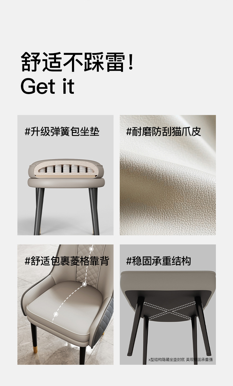 • 오프화이트 싱글 핸들 [스프링 소프트백 플래그십 모델] 두꺼운 원목 다리 + 내마모성 고양이 스크래치 가죽