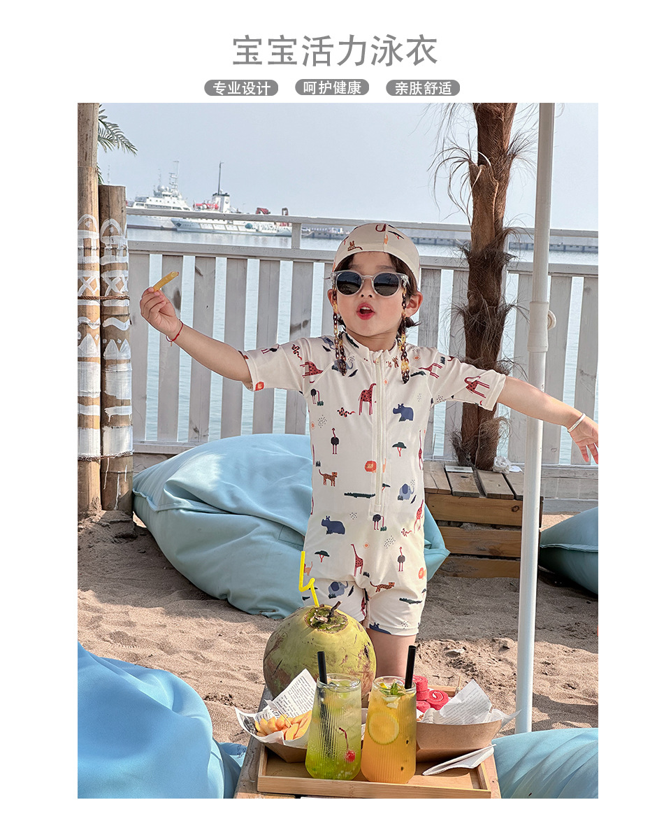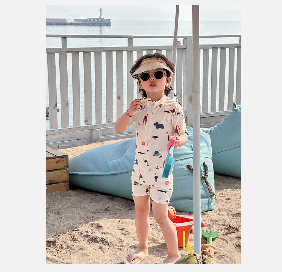 남자와 아기의 긴팔 수영복 2025 새로운 소년 해변 휴일 수영복 어린이 선 스크린 빠른 건조 수영복