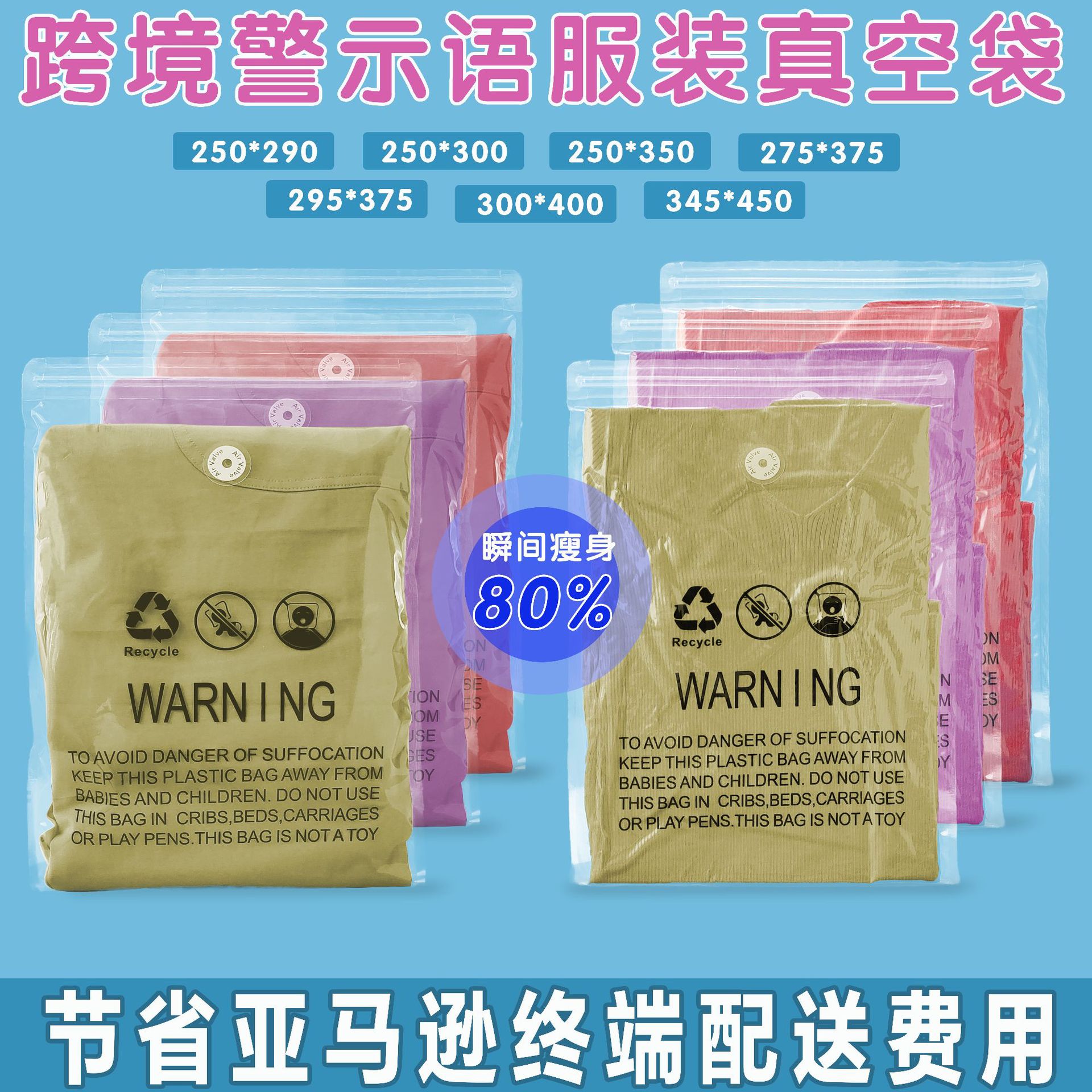 아마존 경고 단어 의류 진공 가방 봉제 옷을 누르면 이중 지퍼 포장 가방 질식 방지 경고 단어 가방
