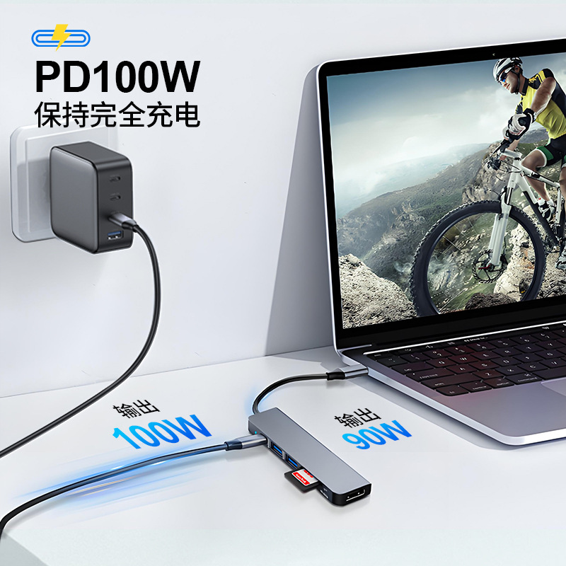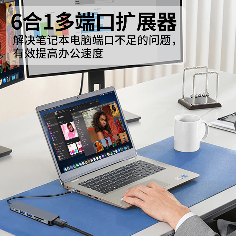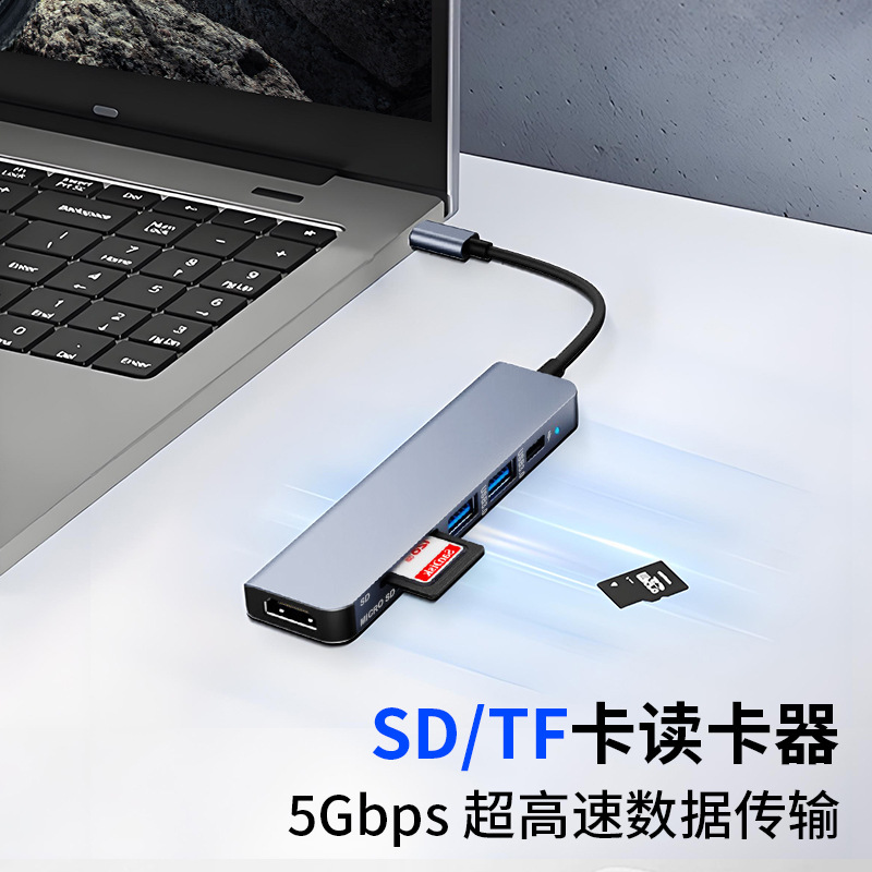 6-in-1 타입-C 확장 도크 HDMI 멀티 인터페이스 허브 노트북 PD 충전 카드 리더기 변환 허브스토어 가기