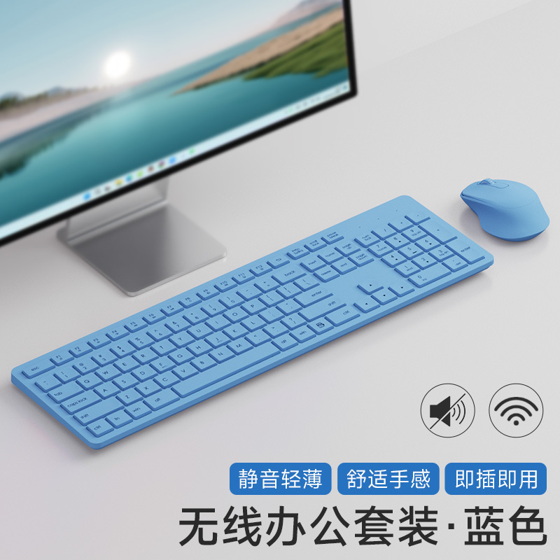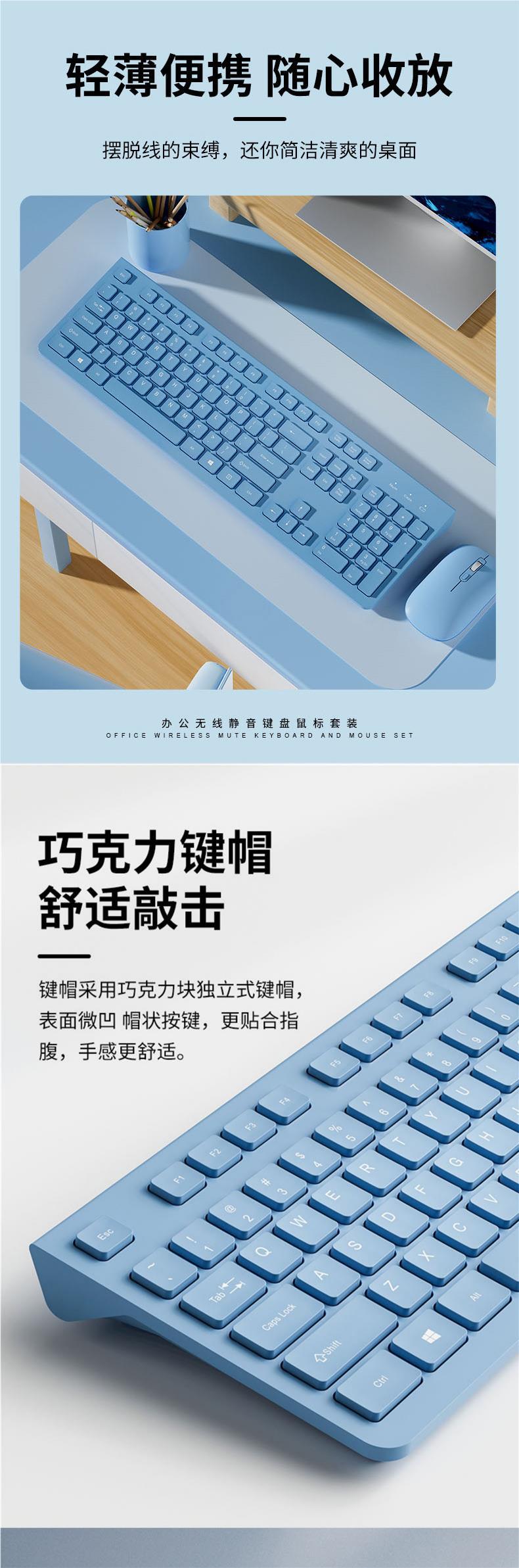 • 파란색 무선 키보드 및 마우스 세트 Qingying은 손에 닿는 느낌이 정말 좋습니다/초박형 및 조용함/오래 지속되는 배터리 수명 Qingying Qingying