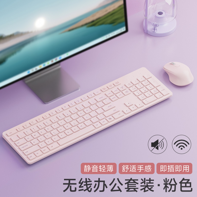 • 핑크 무선 키보드 및 마우스 세트 Qingying은 손에 닿는 느낌이 정말 좋습니다/초박형 및 조용함/오래 지속되는 배터리 수명 Qingying Qingying