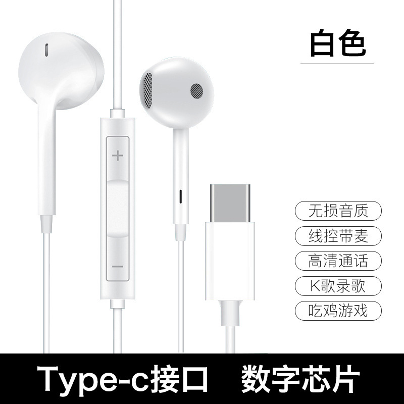 • White Qingying 유형 Qingying c 플랫 헤드 인터페이스 Qingying Qingying 디지털 칩 + 무손실 음질 + 마이크가 있는 라인 제어