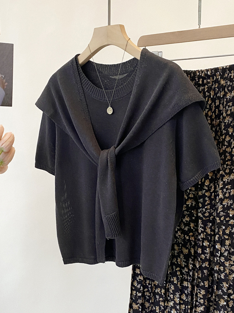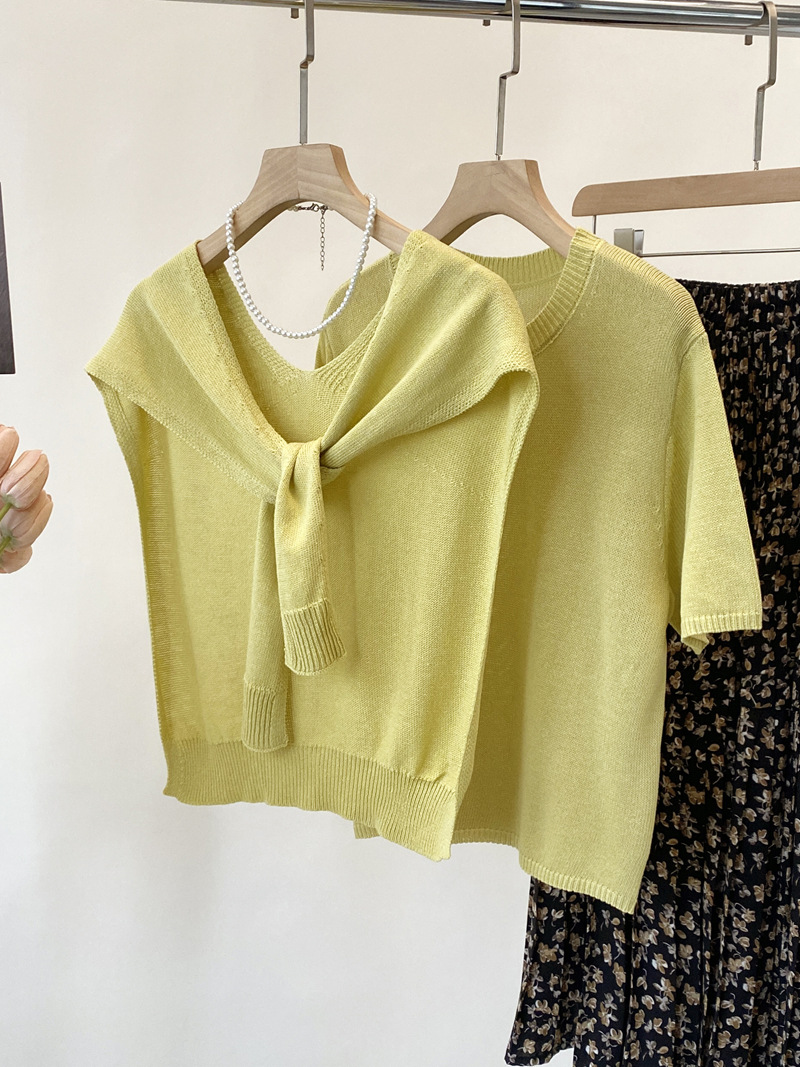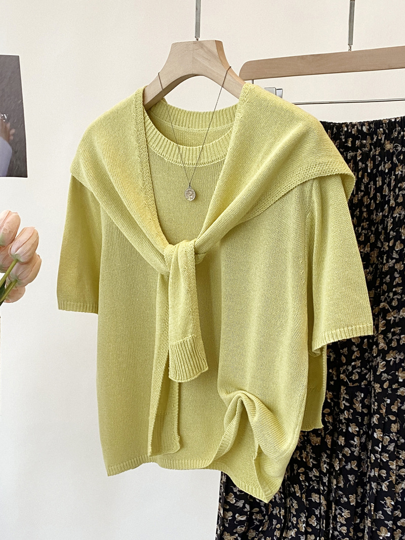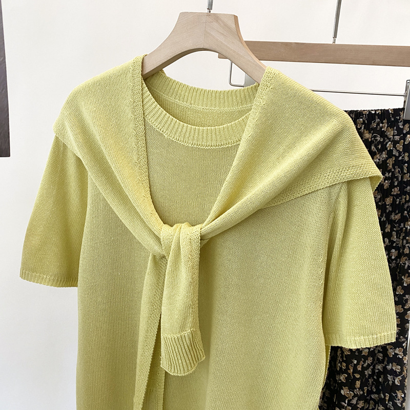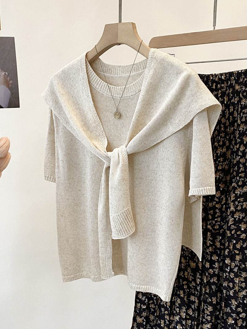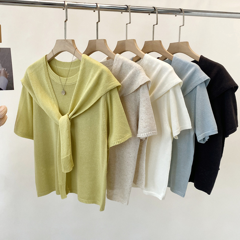 25 봄과 여름 새로운 한국 두 조각 반팔 목도리 텐셀 리넨 톱 1512스토어 가기