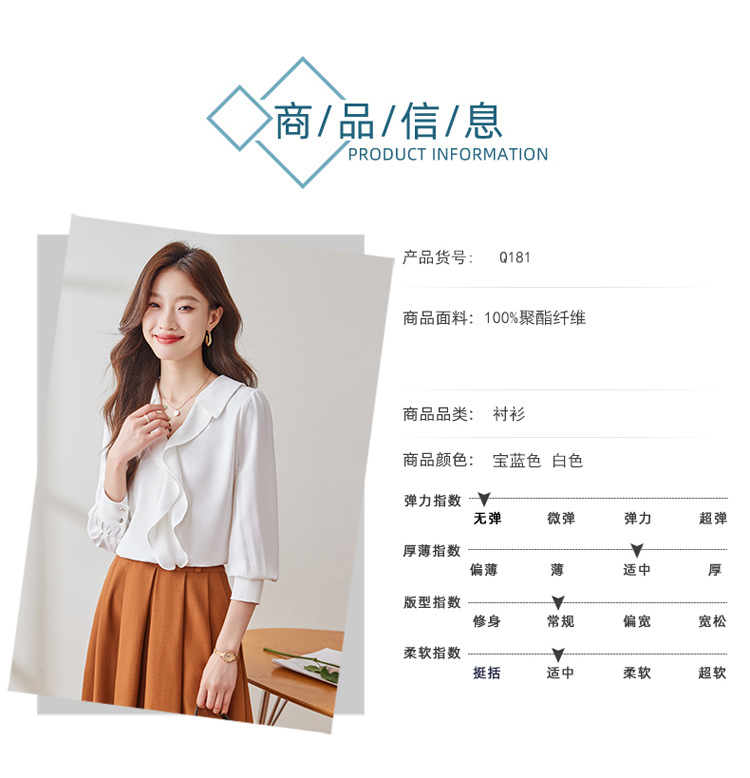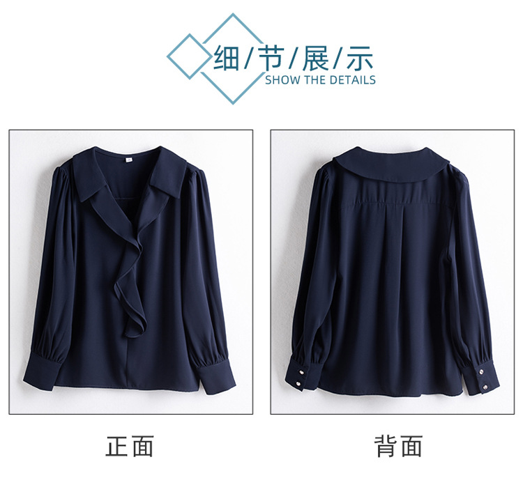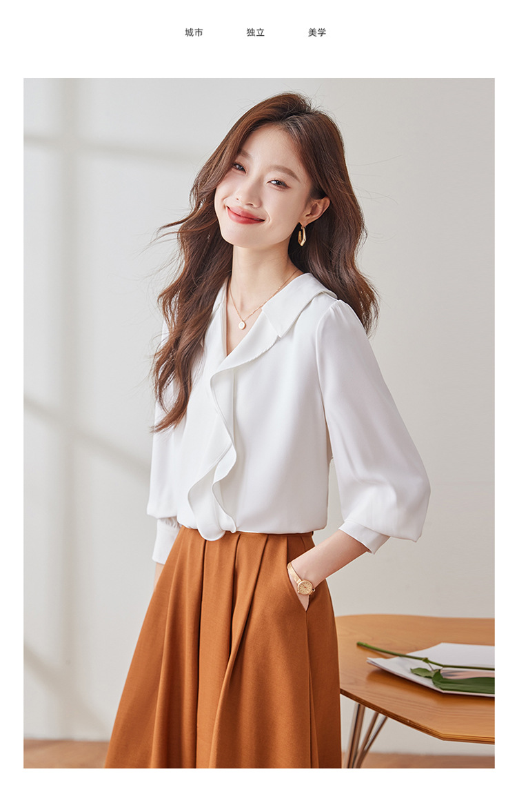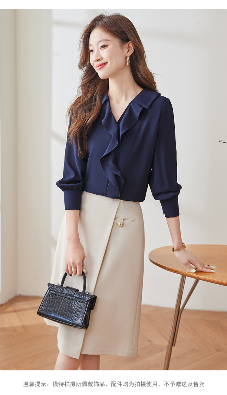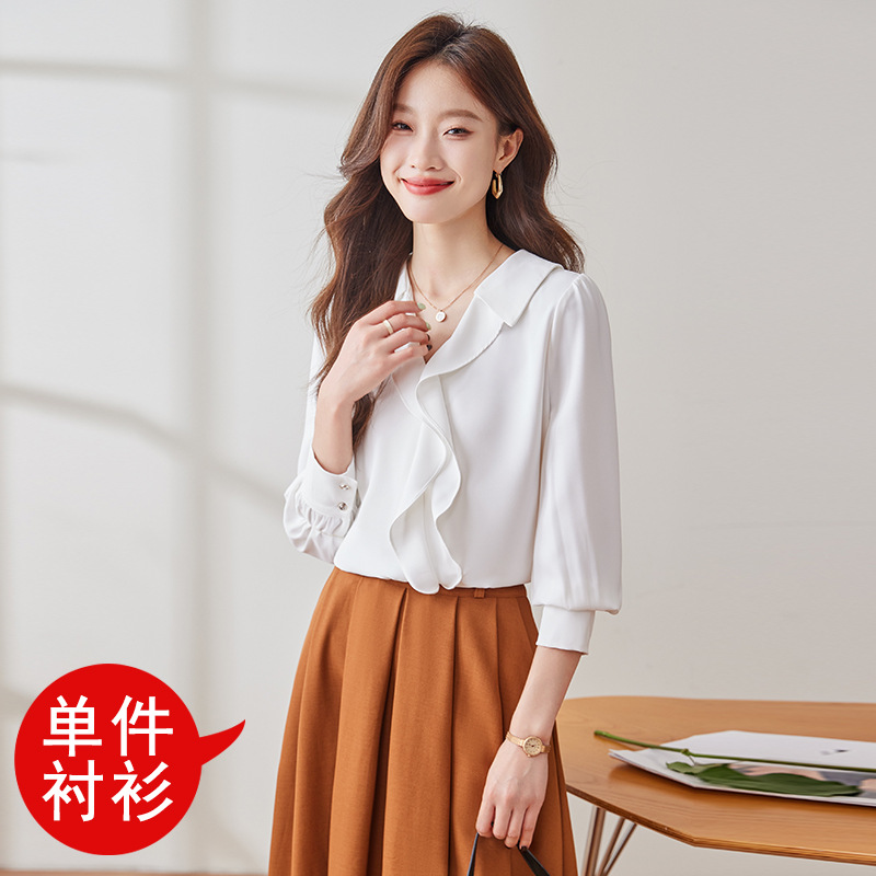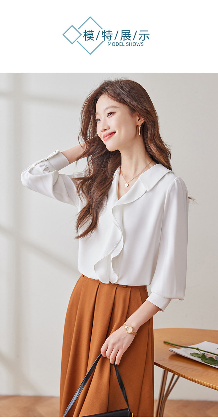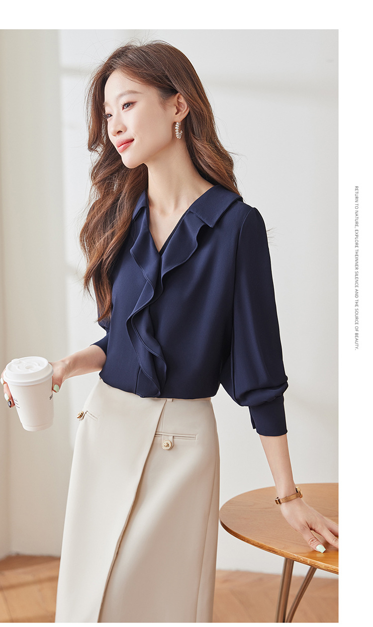 우아한 V 넥 러플 쉬폰 셔츠 여성의 2025 봄 캐주얼 올 매치 OL 패션 간단한 긴 소매 셔츠