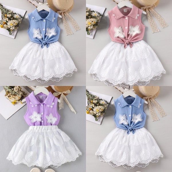 아마존, 여름 소녀 세트 2025 유행 아동복 민소매 메쉬 원피스 국경 간 공급
