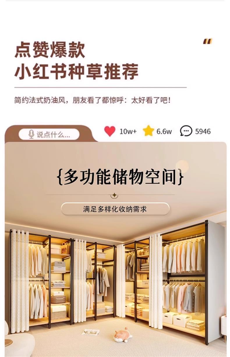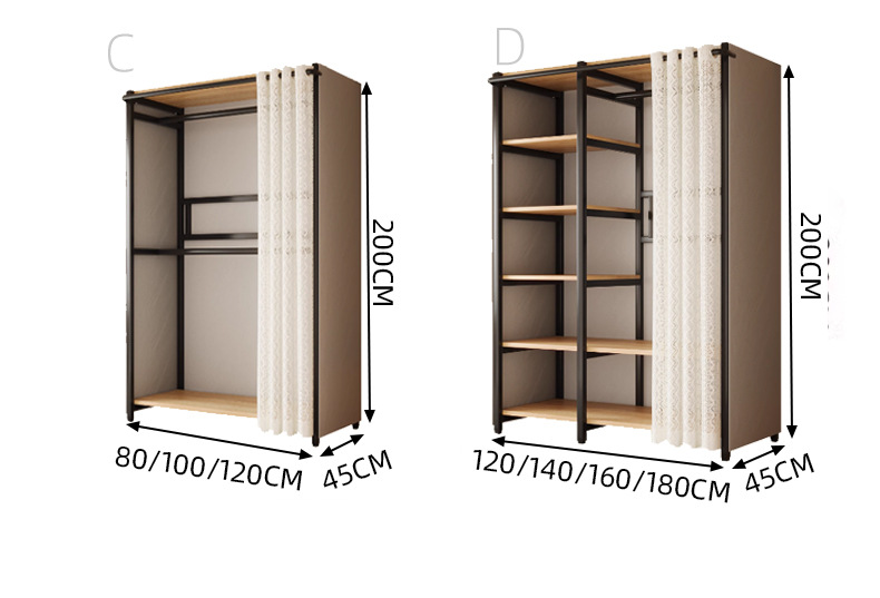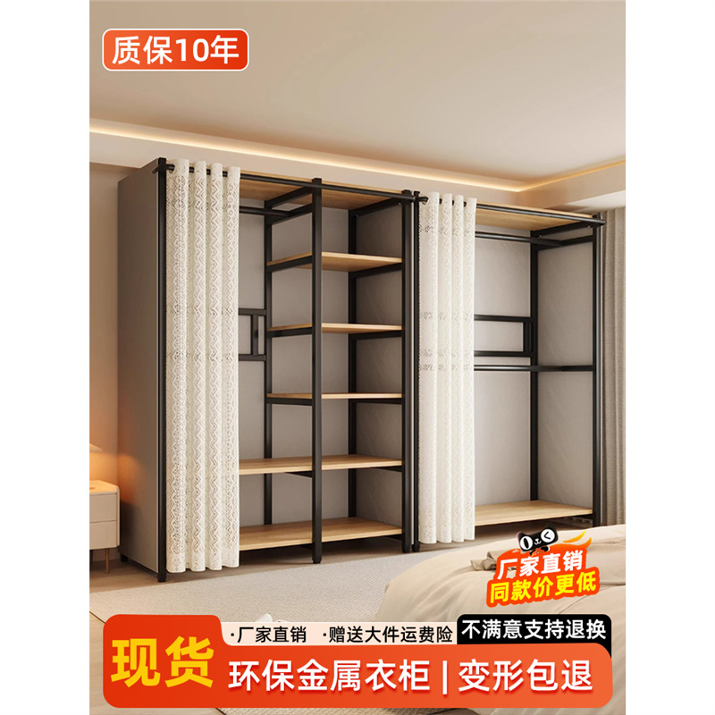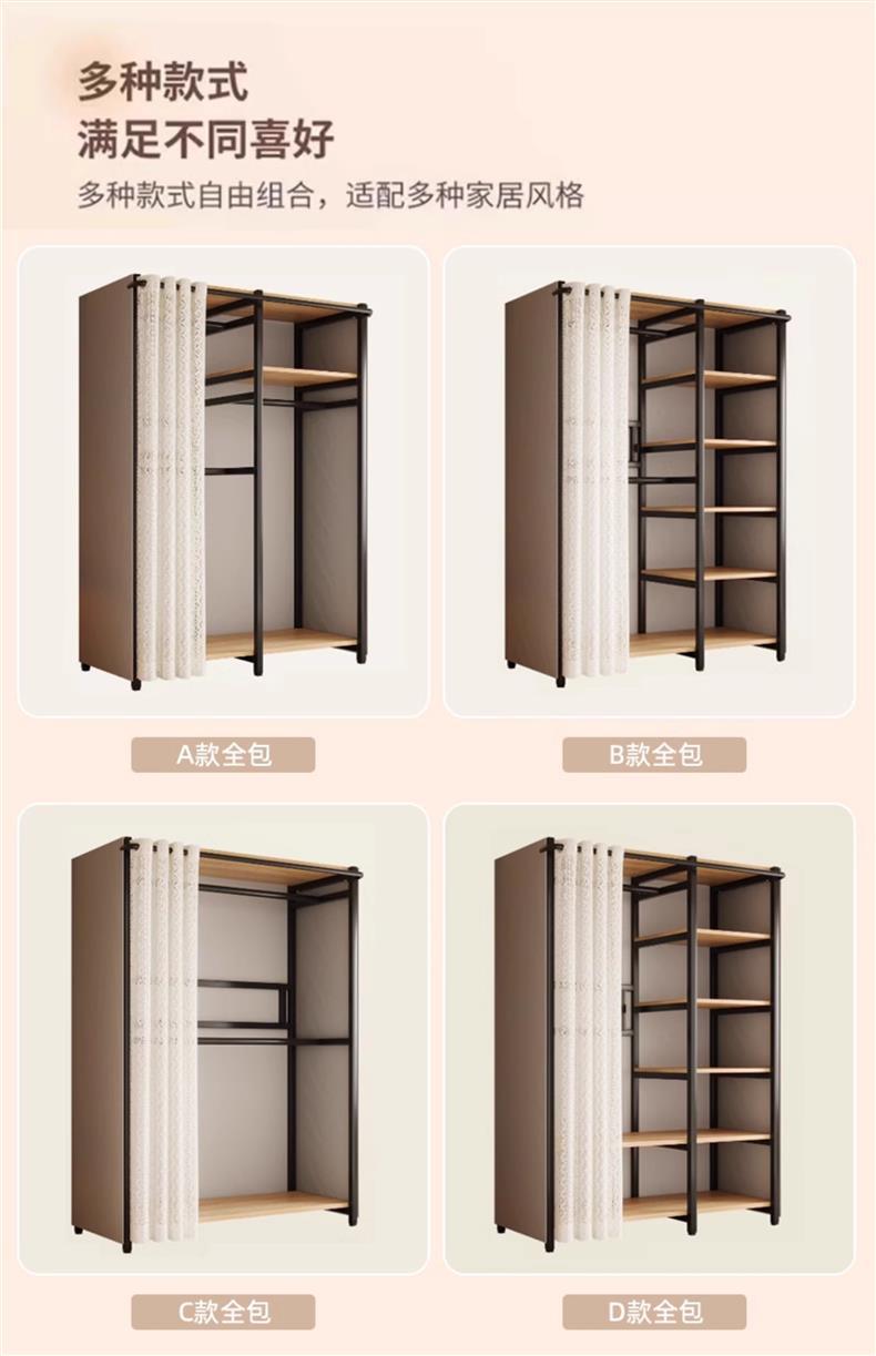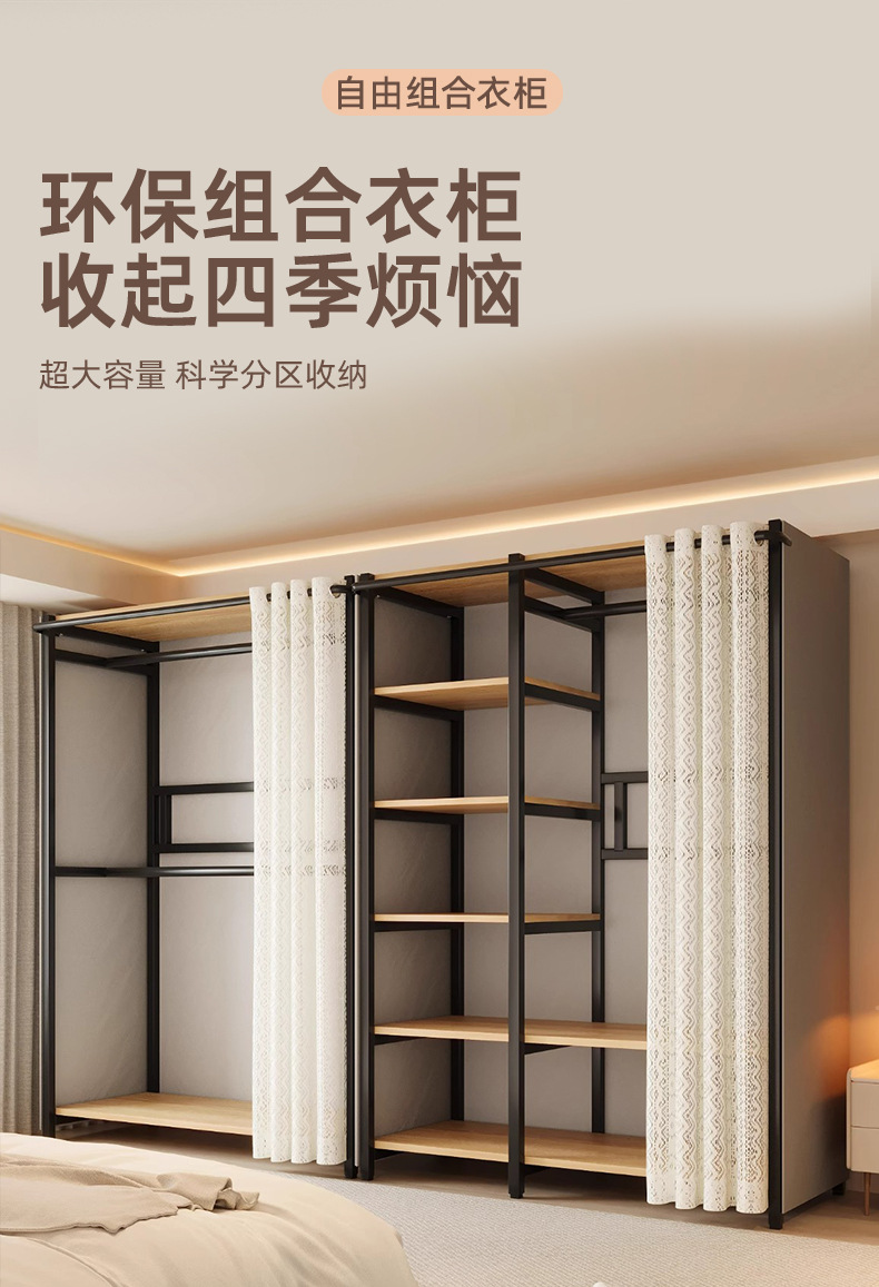 콤비네이션 옷장 간단한 금속 캐비닛 가정용 옷장 옷장 걸이 어린이 임대 방 방진 침실스토어 가기