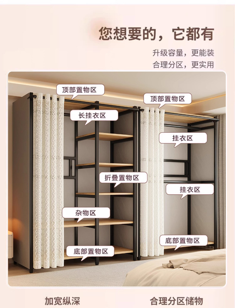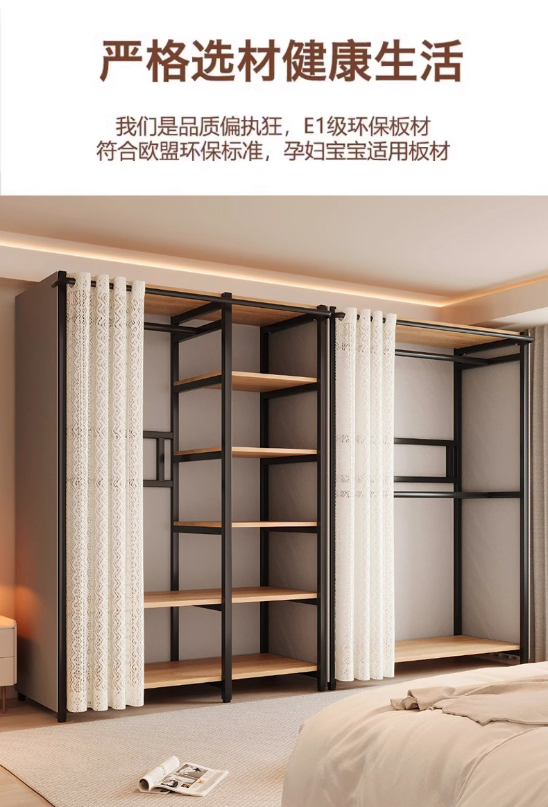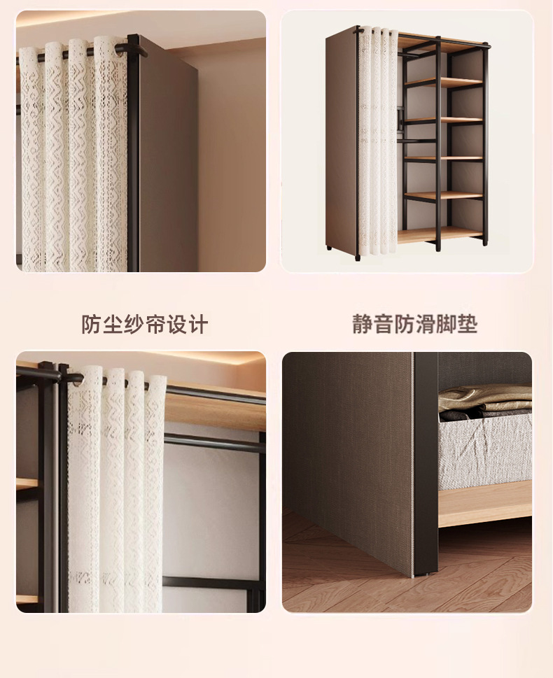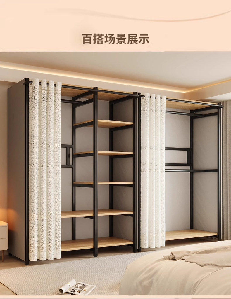 콤비네이션 옷장 간단한 금속 캐비닛 가정용 옷장 옷장 걸이 어린이 임대 방 방진 침실
