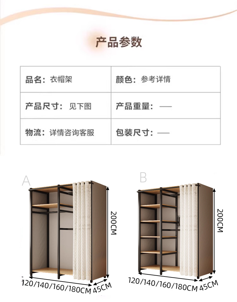 • 거즈 커튼 강화 AC 조합 모델 220*45*200 천 가방 블랙 프레임 라이트 호두 (변형 환불 가능)