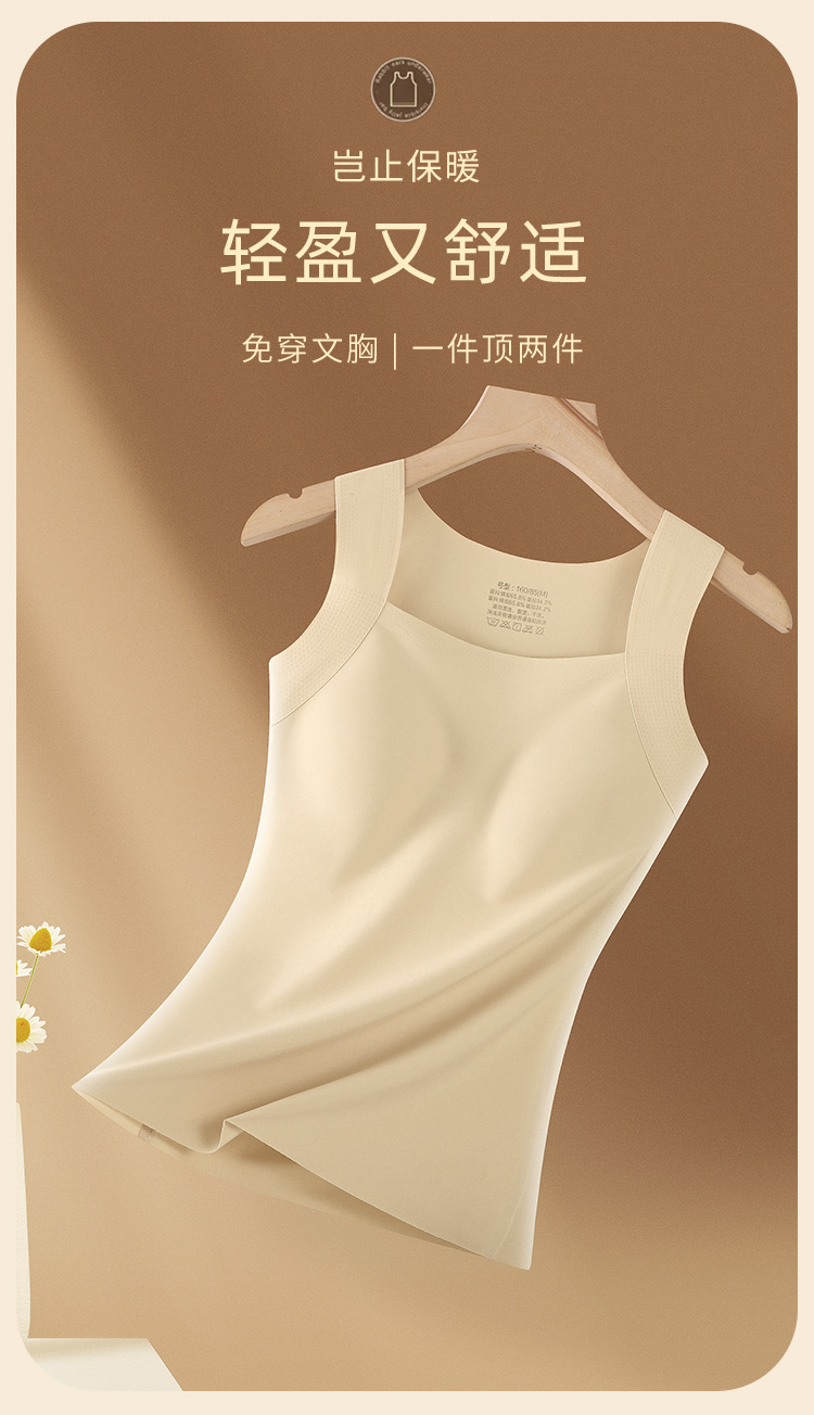 Hyaluronic Acid Skin Beauty Clothes 여성용 원활한 근육베이스 의류 가슴 패드와 따뜻한 조끼 알몸 가을 겨울 슬링베이스 셔츠 느낌