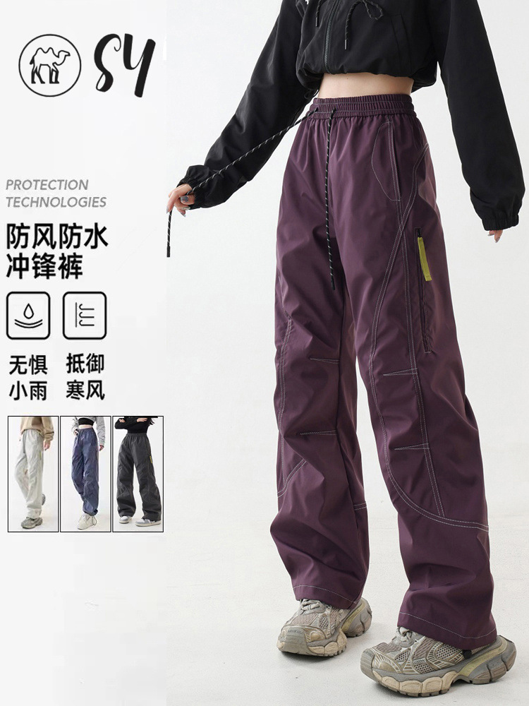 WASSUP 공동 브랜드 작업복 여성 봄, 가을 2025 새로운 야외 속건성 스포츠 방풍 및 방수 충전 바지