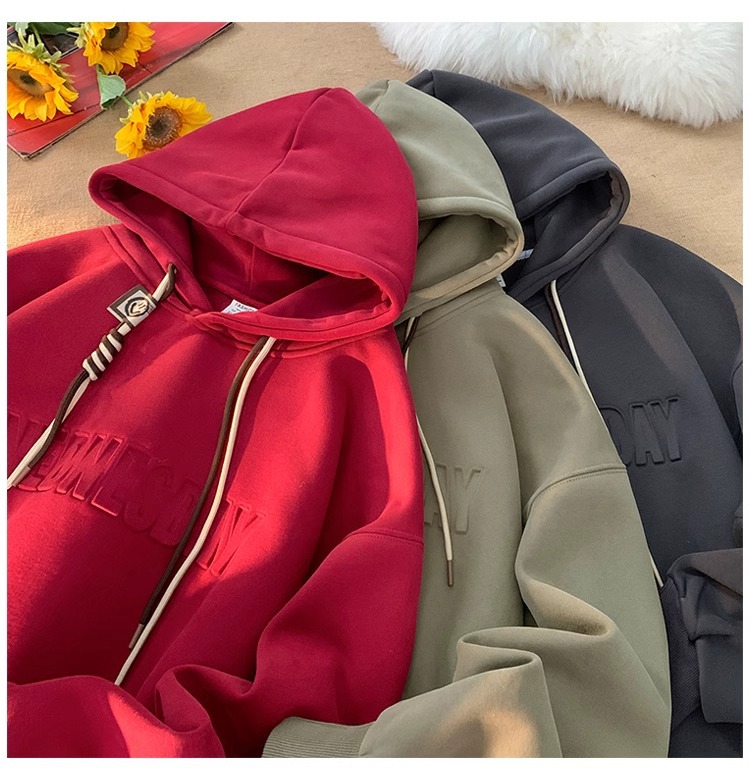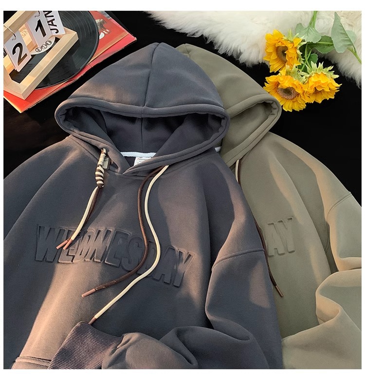 미국식 헤비 스웨트 셔츠 남자 봄과 가을 2025 새로운 패션 브랜드 다크 브라운 오버 사이즈 후드 두꺼운 커플 재킷스토어 가기