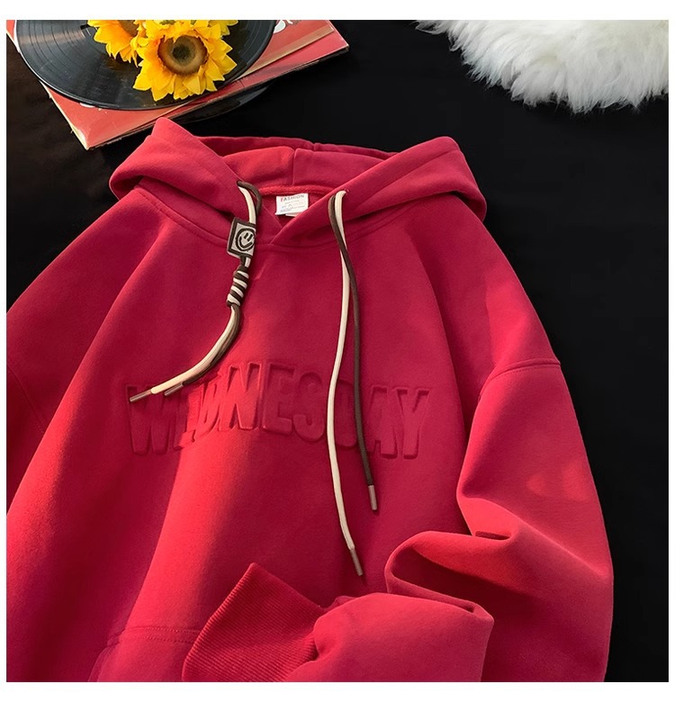 미국식 헤비 스웨트 셔츠 남자 봄과 가을 2025 새로운 패션 브랜드 다크 브라운 오버 사이즈 후드 두꺼운 커플 재킷