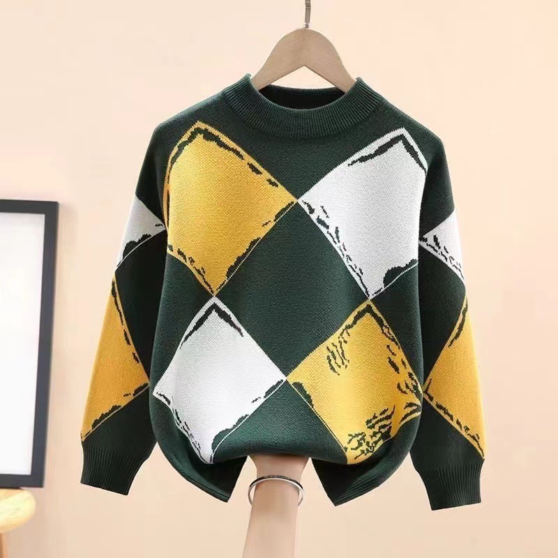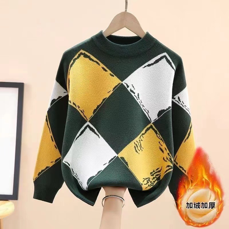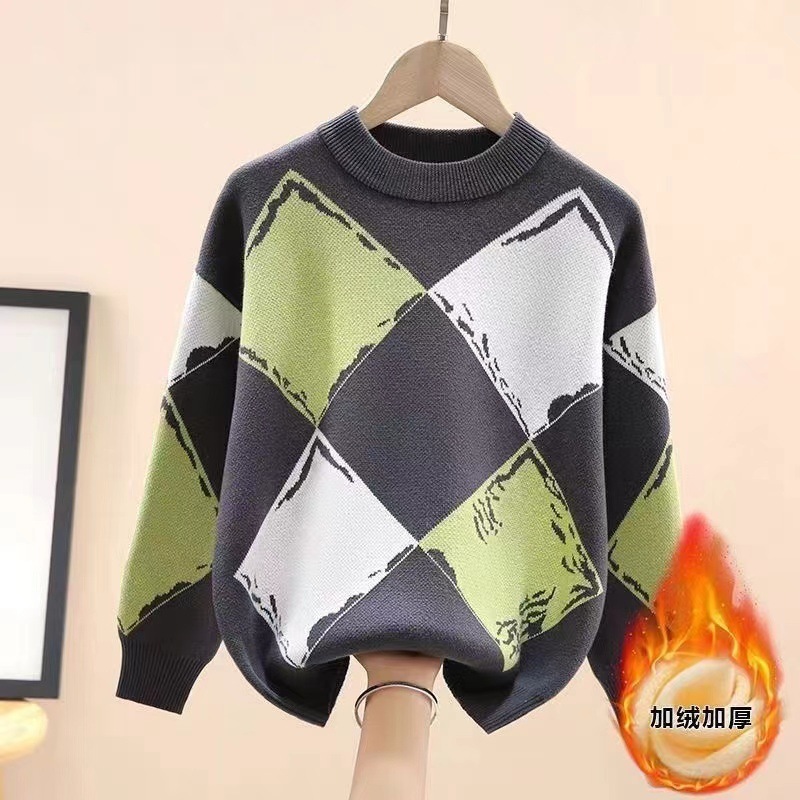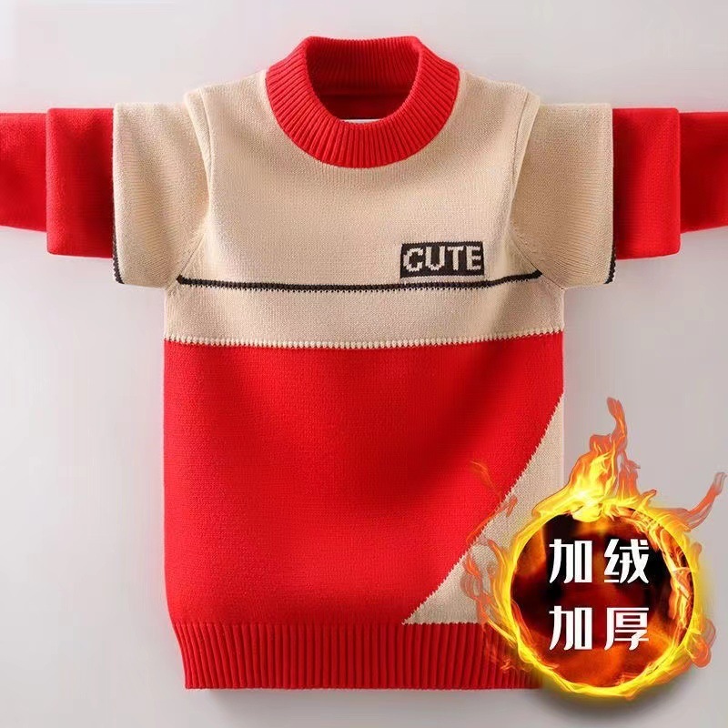 [기모/기모 없음] 소년 스웨터 니트웨어 서양식 한국 기모 두꺼운 가을과 겨울복