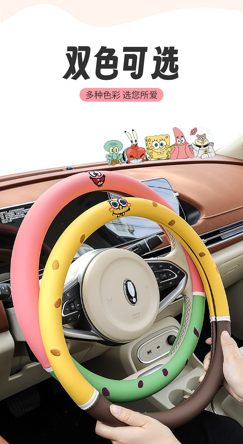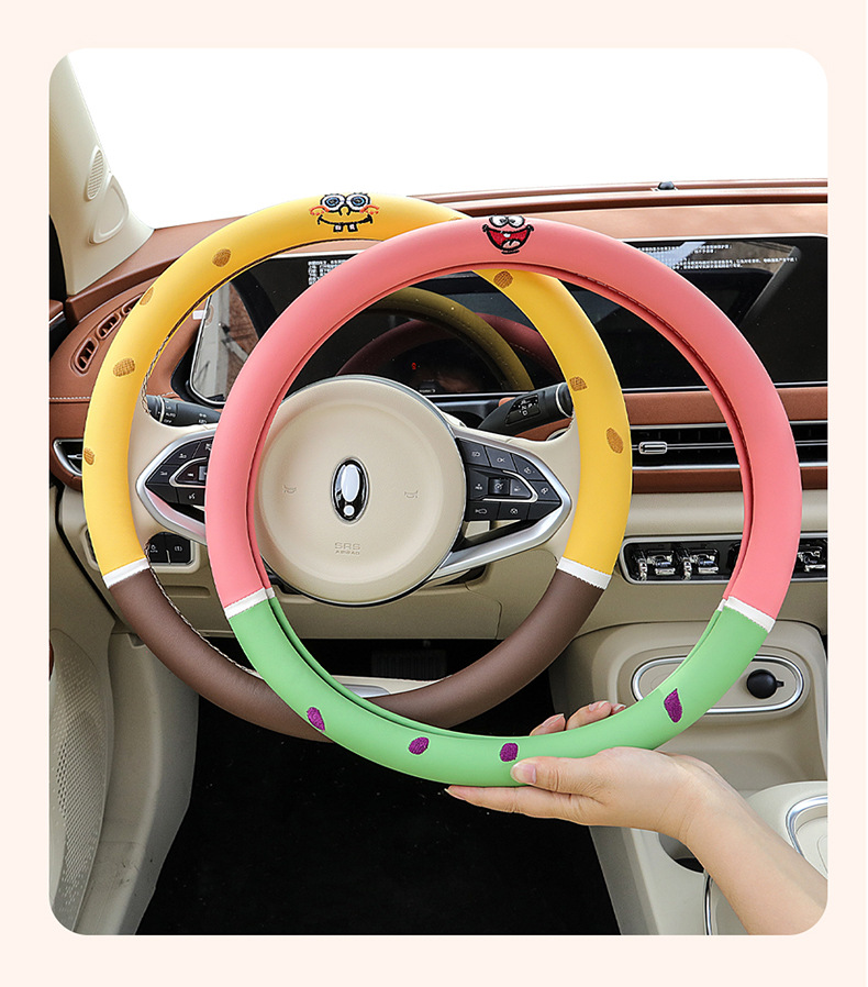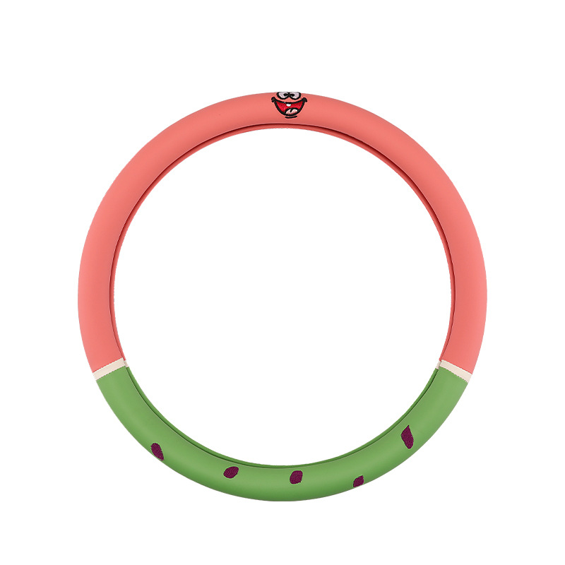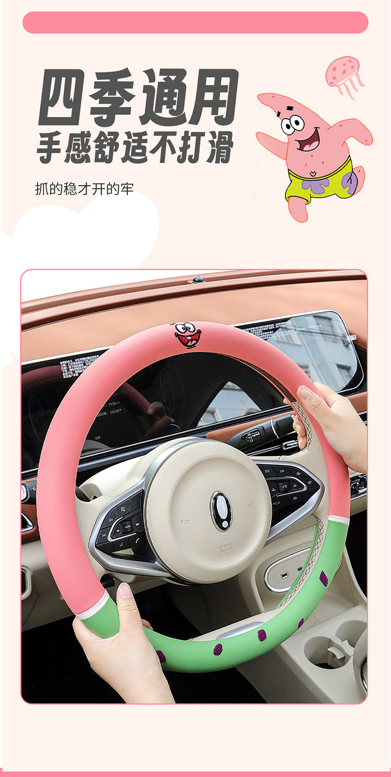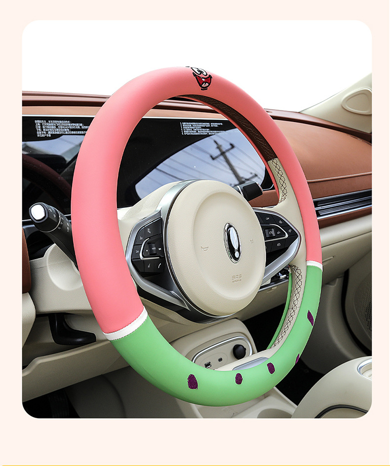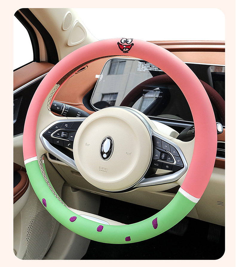 자동차 귀여운 만화 여름 스티어링 휠 커버 여성 남성 가죽 자동차 유니버설 비 슬립 통기성 핸들 커버 사계절스토어 가기