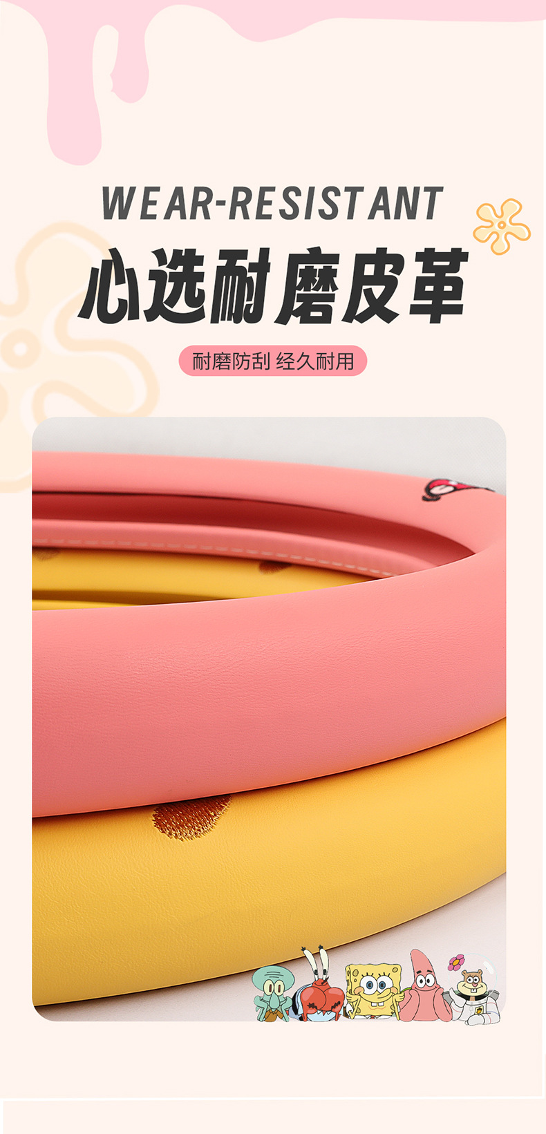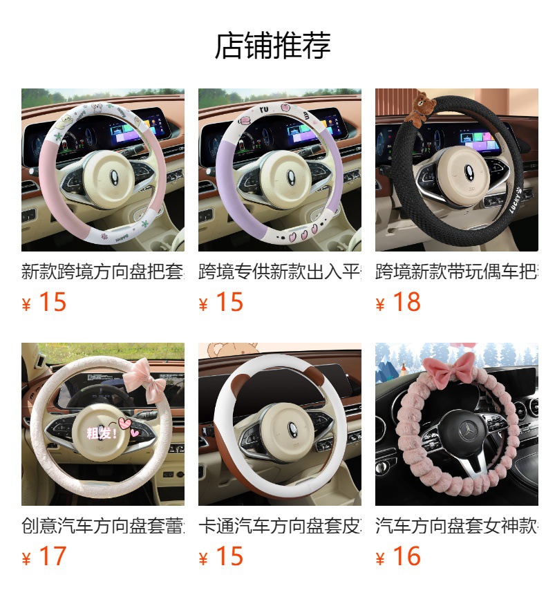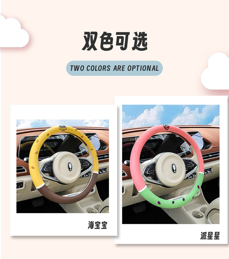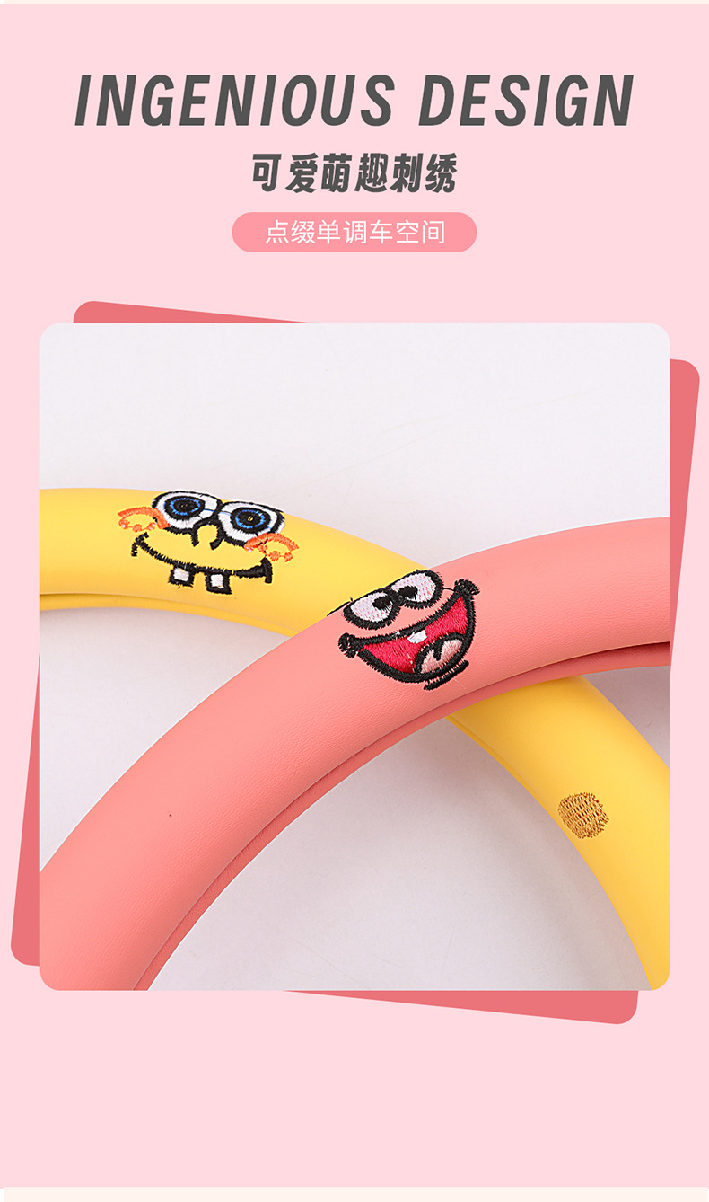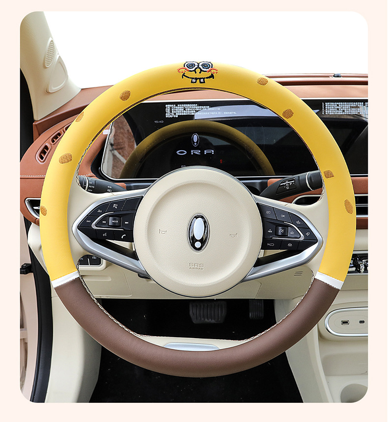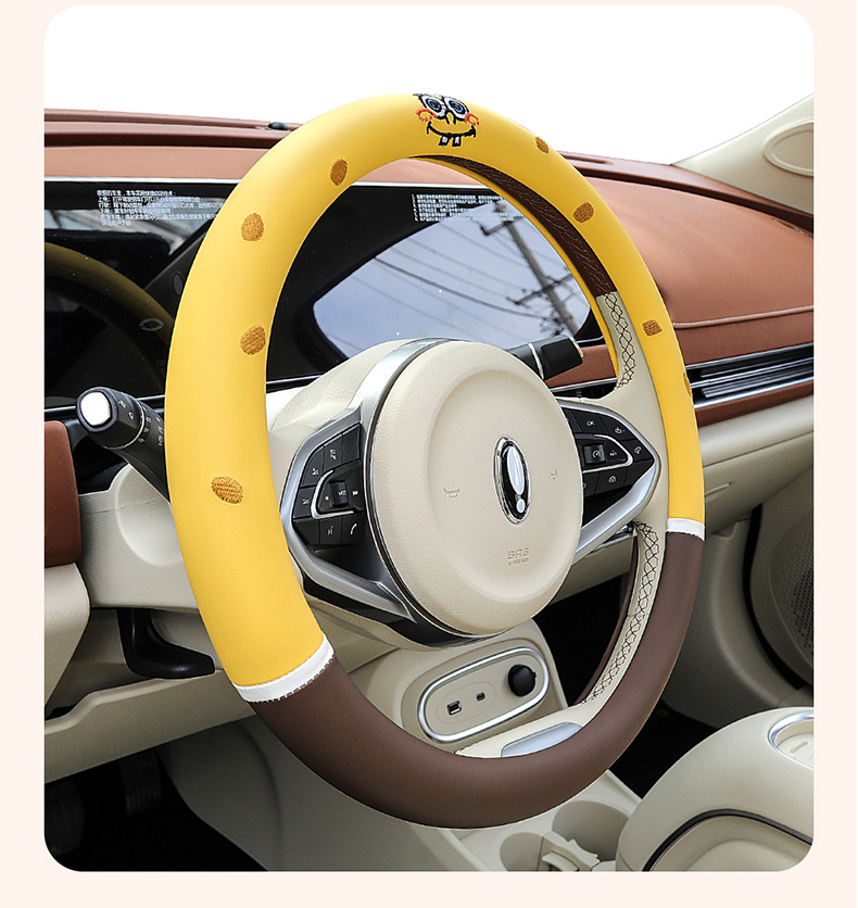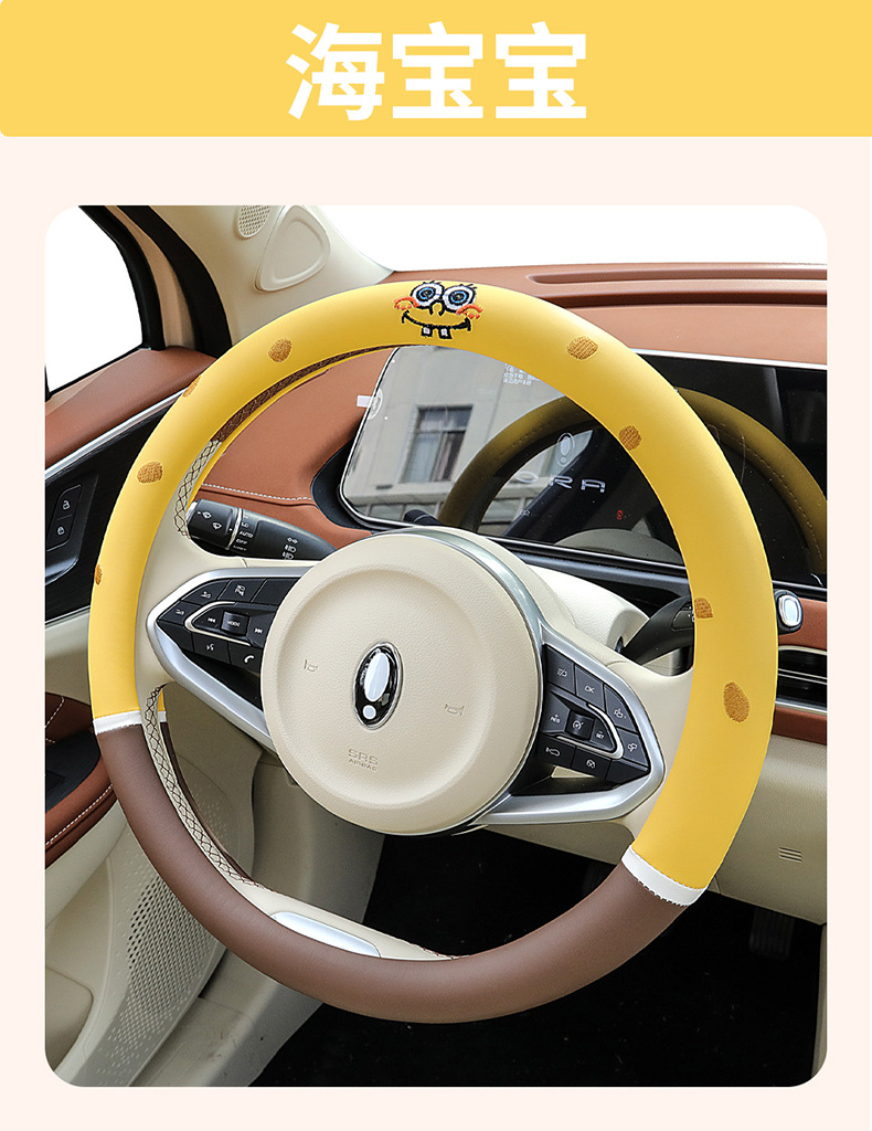 자동차 귀여운 만화 여름 스티어링 휠 커버 여성 남성 가죽 자동차 유니버설 비 슬립 통기성 핸들 커버 사계절스토어 가기
