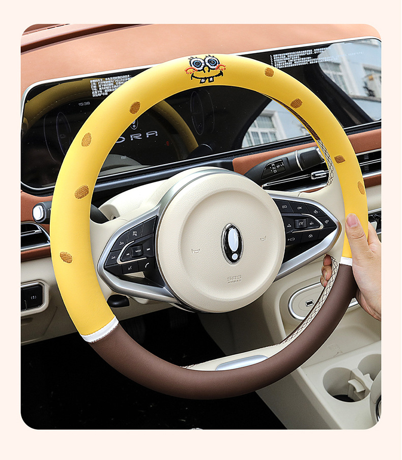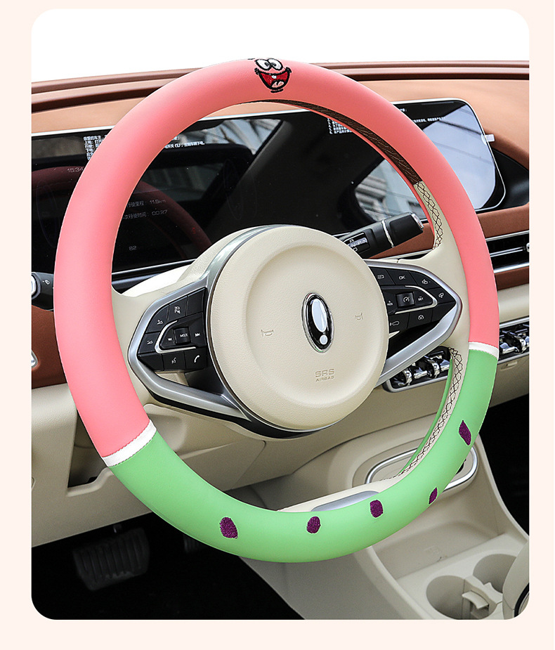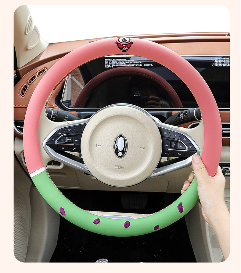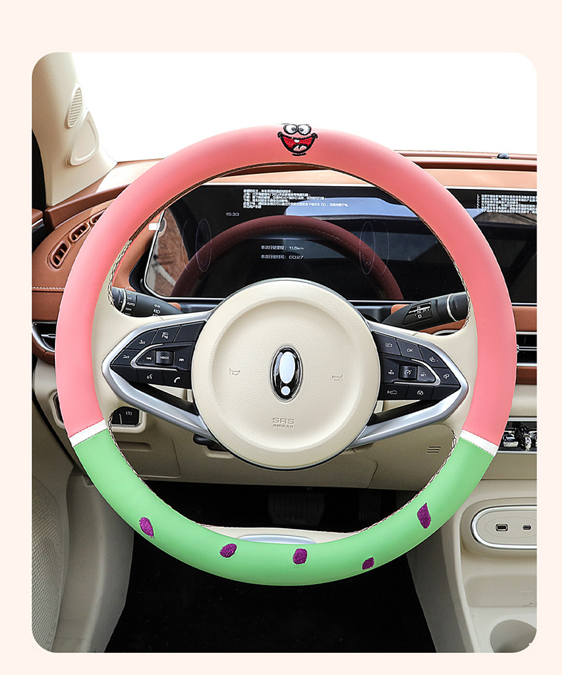 자동차 귀여운 만화 여름 스티어링 휠 커버 여성 남성 가죽 자동차 유니버설 비 슬립 통기성 핸들 커버 사계절