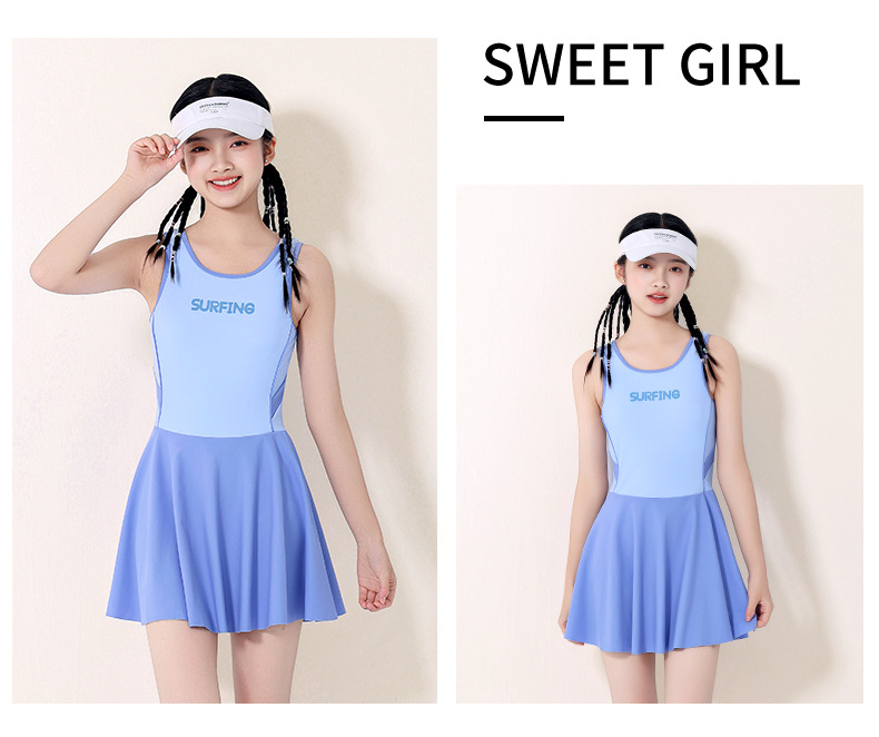 어린이 수영복 소녀 원피스 스커트 2025 신식 전문 자외선 차단제 훈련 중 · 대형 어린이 · 소녀 · 중학생용 수영 세트스토어 가기