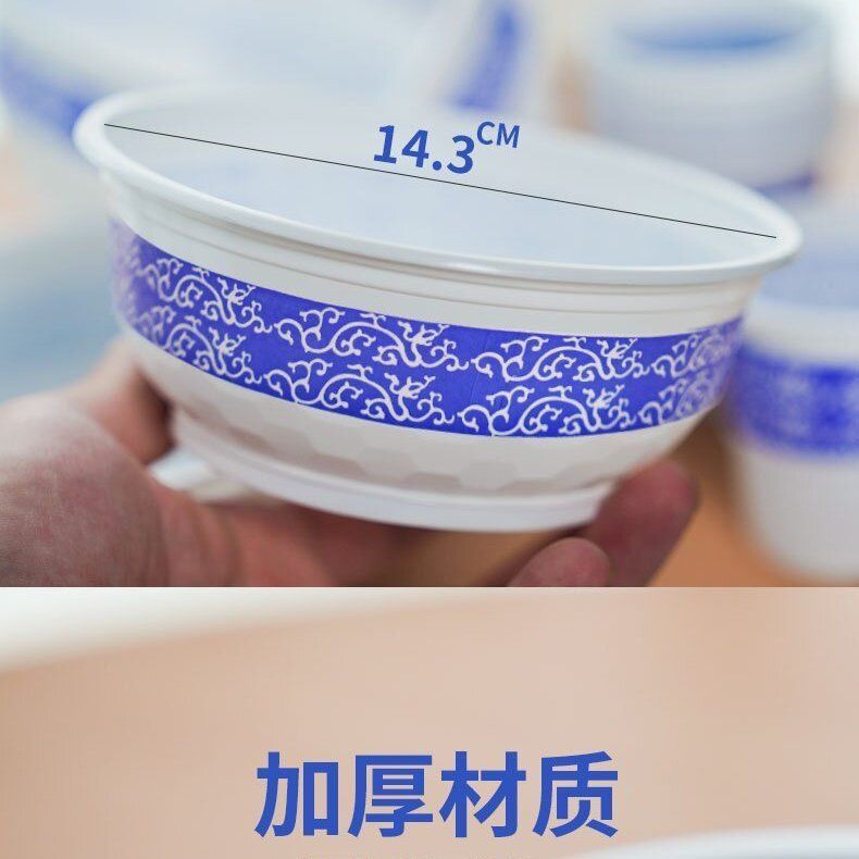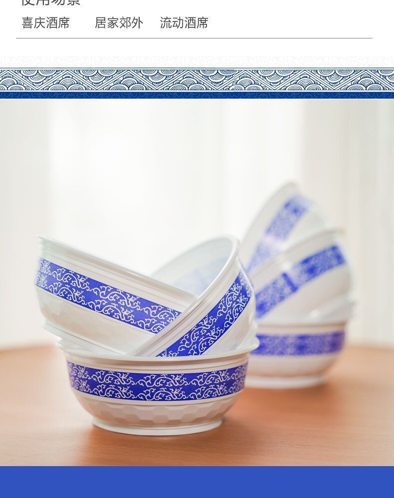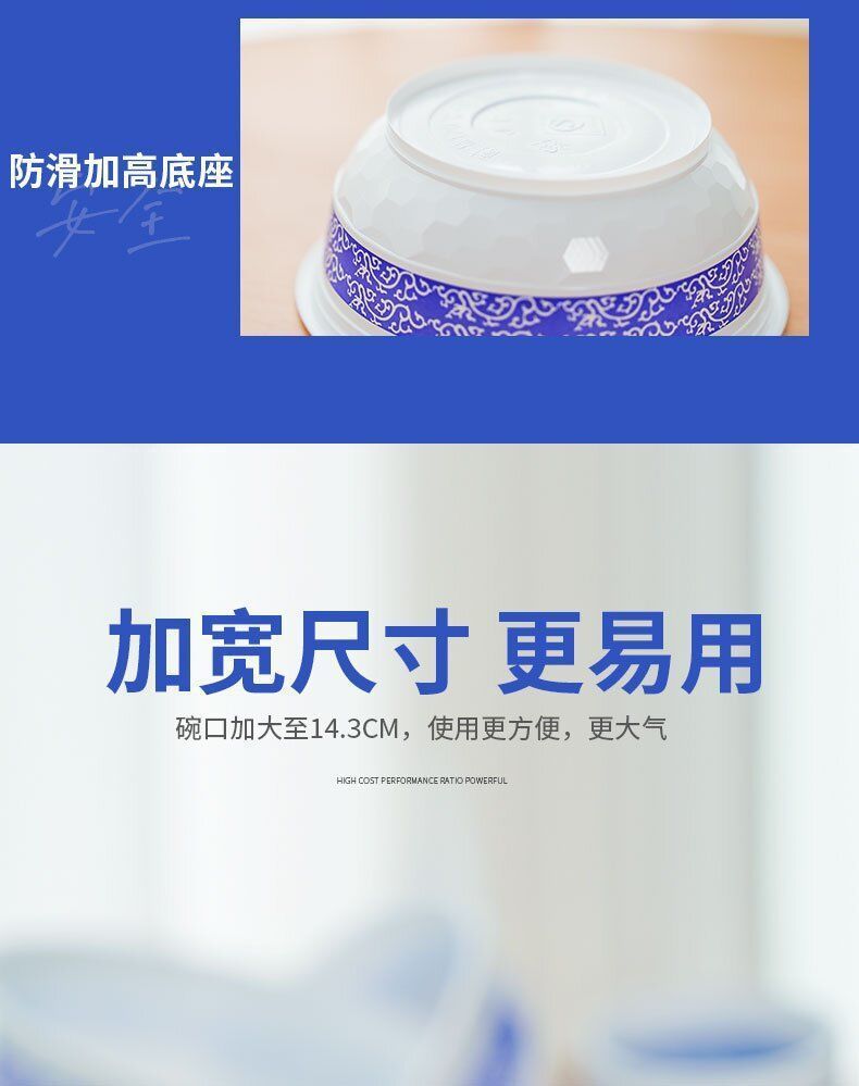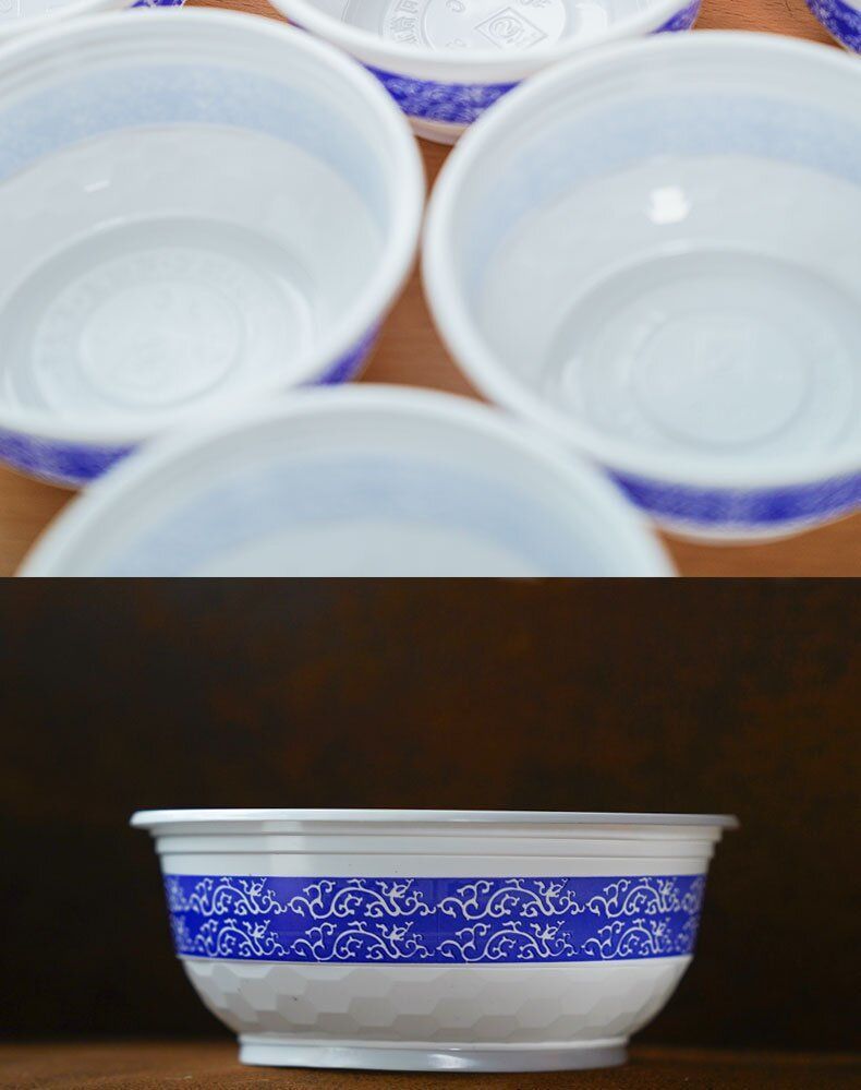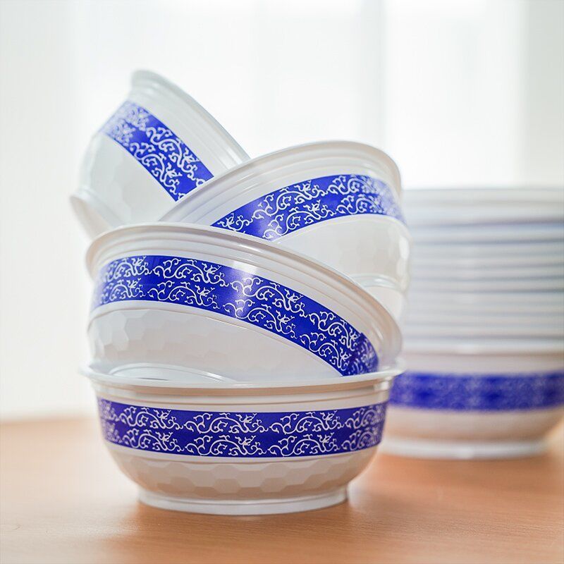 고온 저항하는 일회용 두꺼운 큰 그릇 700 ml 파란색과 흰색 도자기 플라스틱 그릇 밥 그릇 단단한 그릇 야채 그릇 가정용 그릇 MU