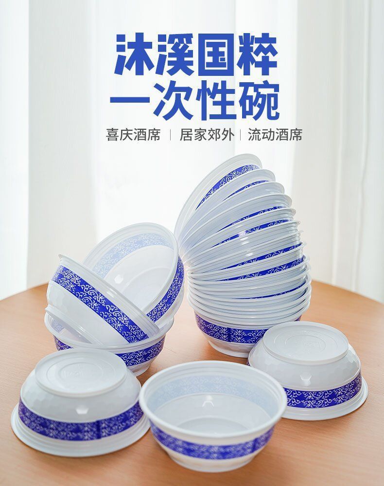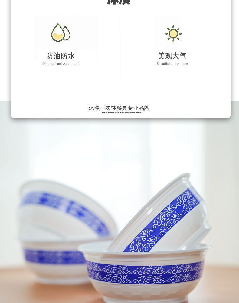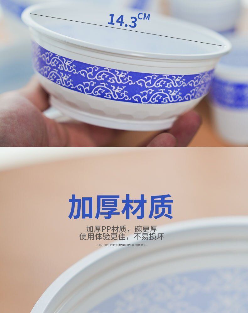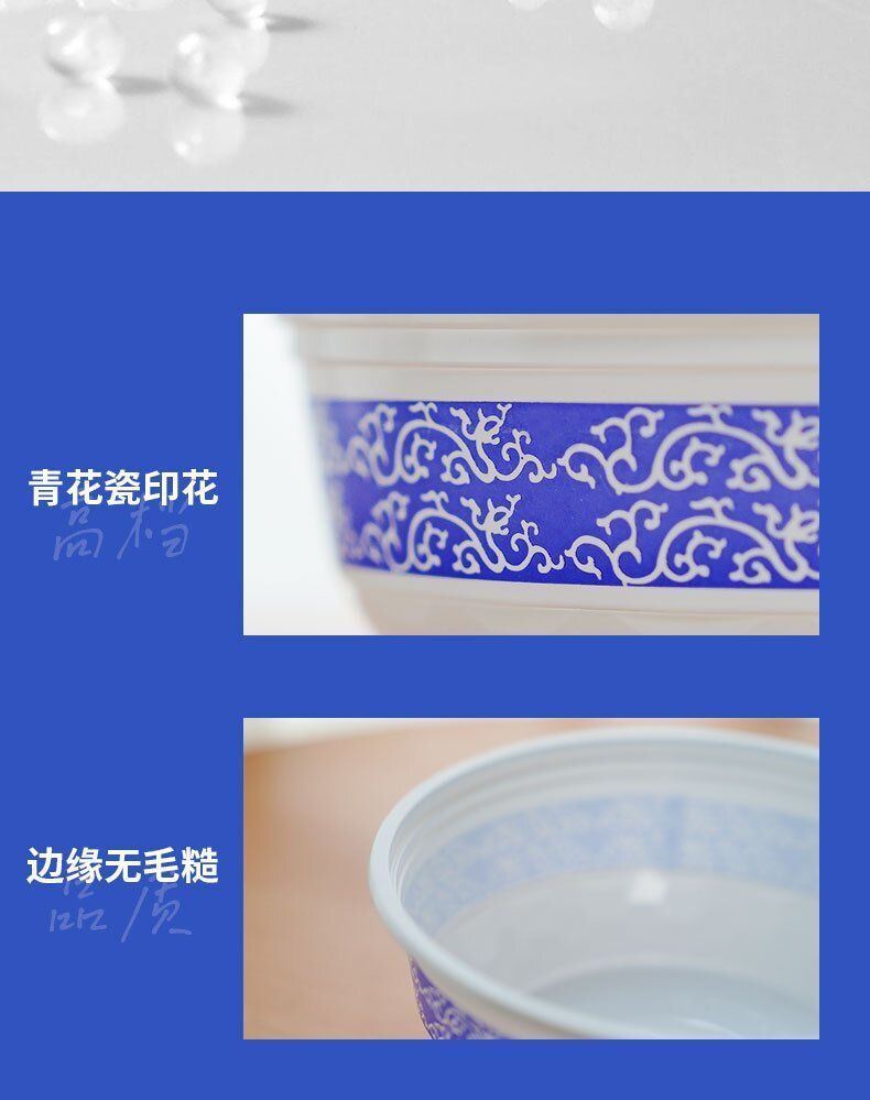 고온 저항하는 일회용 두꺼운 큰 그릇 700 ml 파란색과 흰색 도자기 플라스틱 그릇 밥 그릇 단단한 그릇 야채 그릇 가정용 그릇 MU스토어 가기