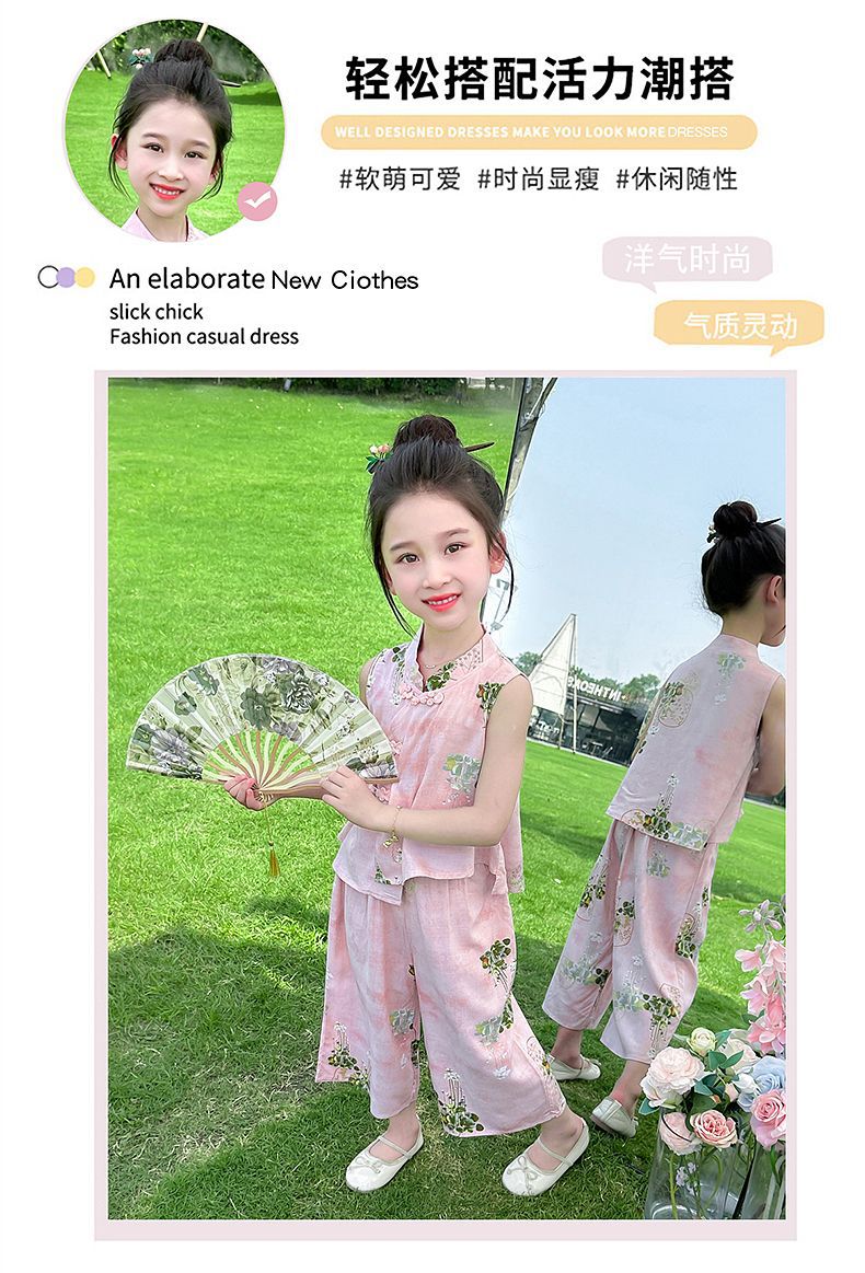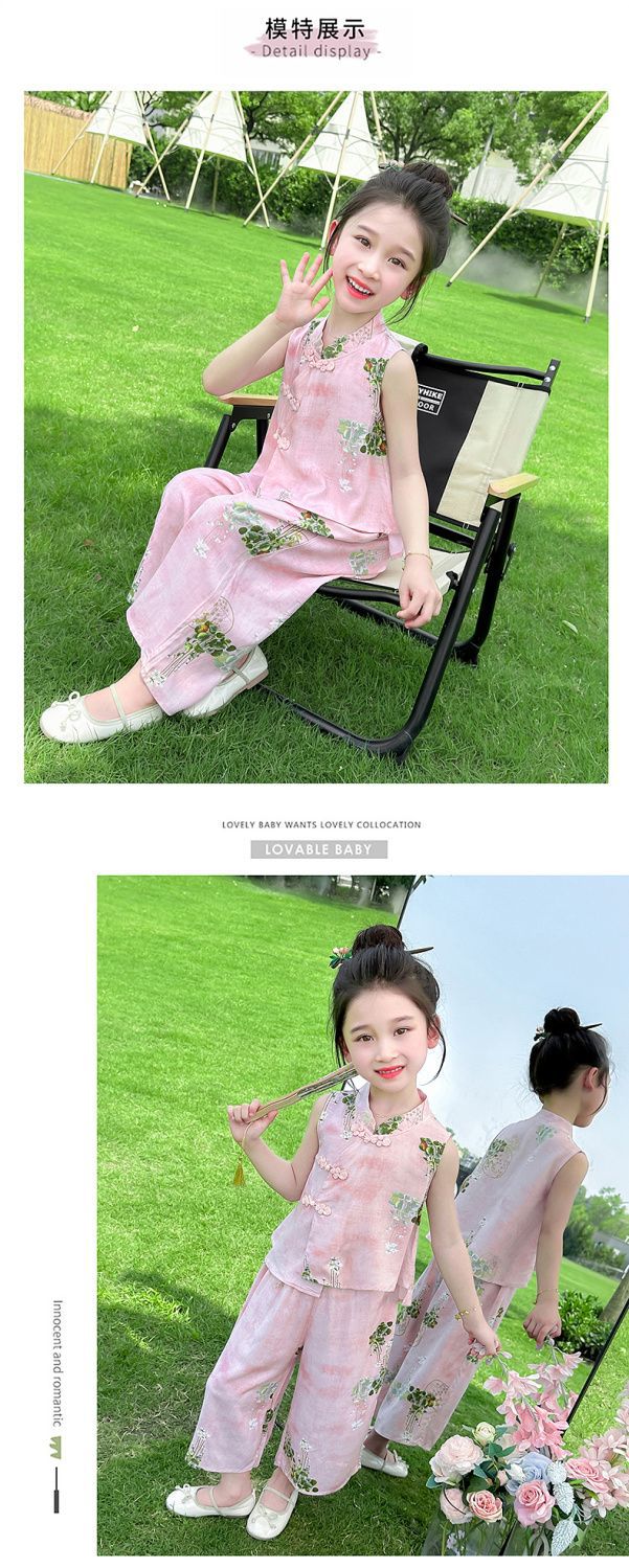 소녀 중국 스타일 국가 스타일 세트 2025 새로운 어린이 여름 한푸 서양 스타일 아기 투피스 여름 원피스