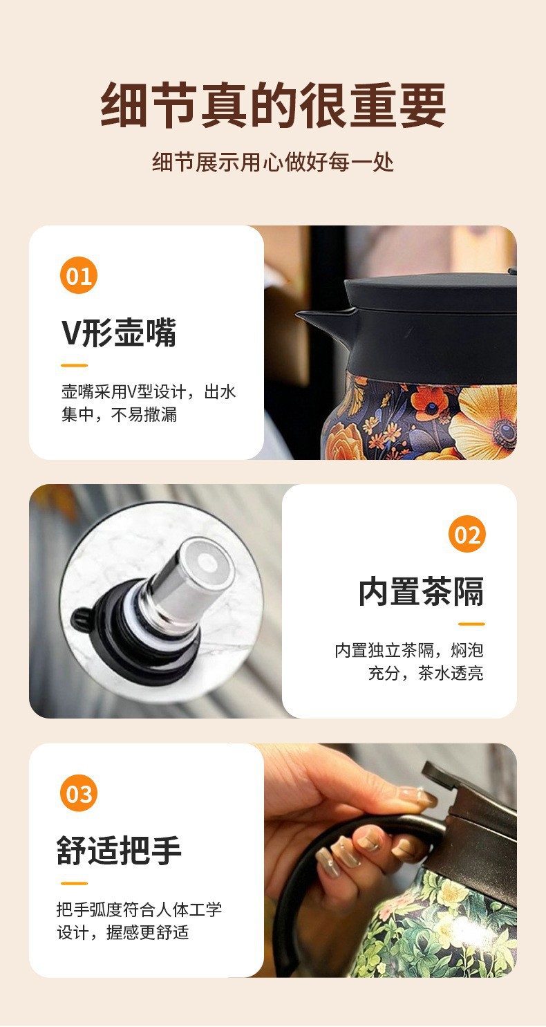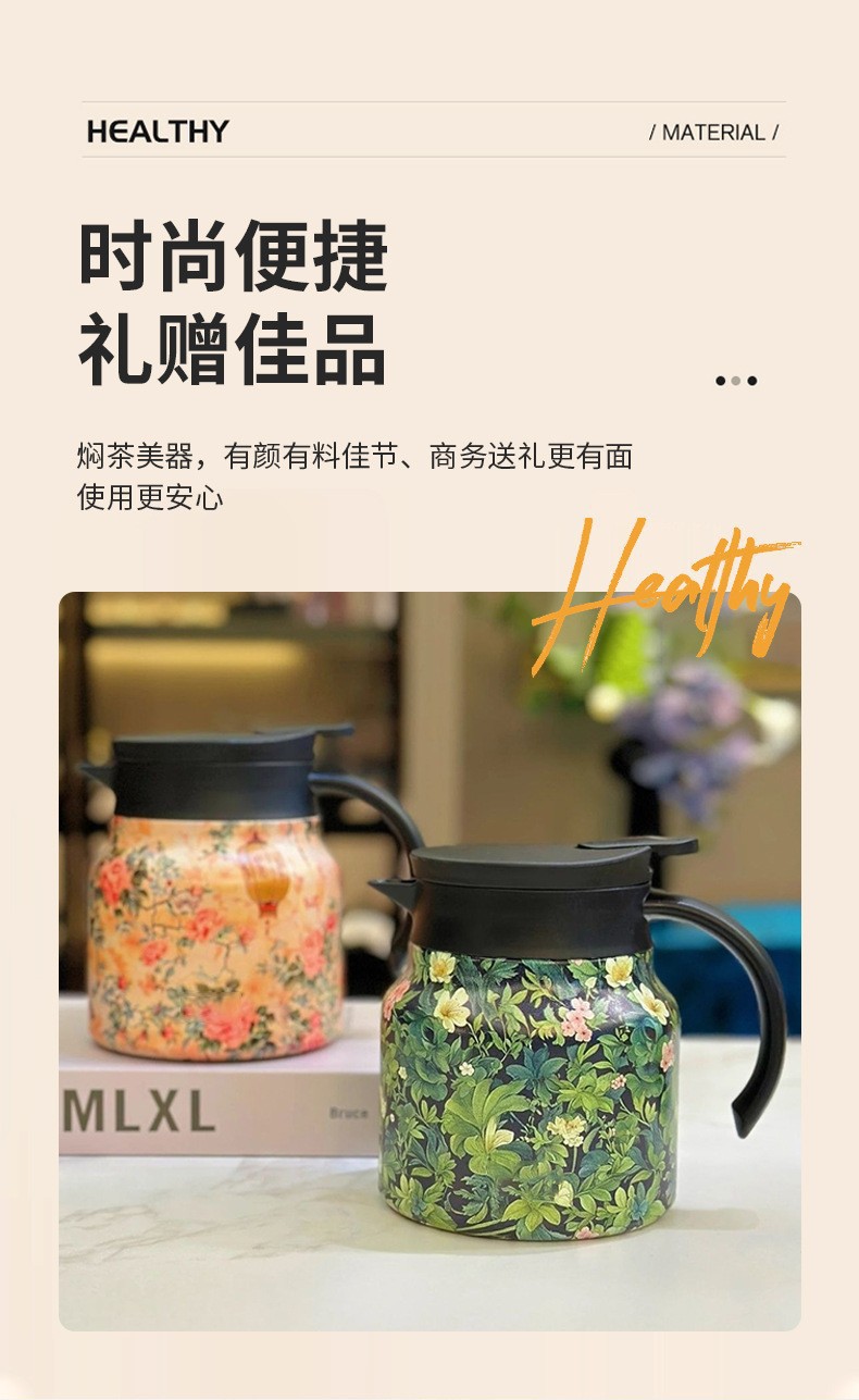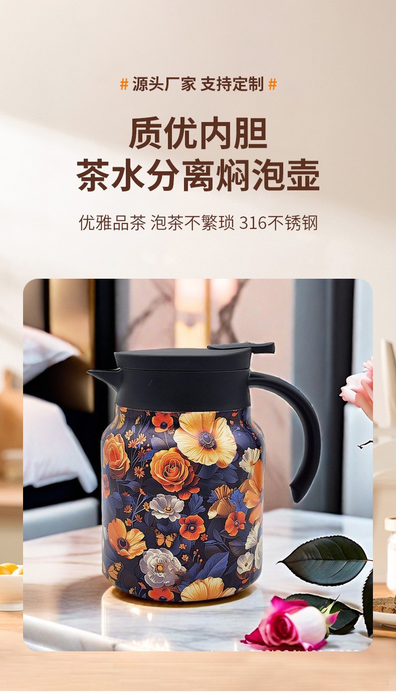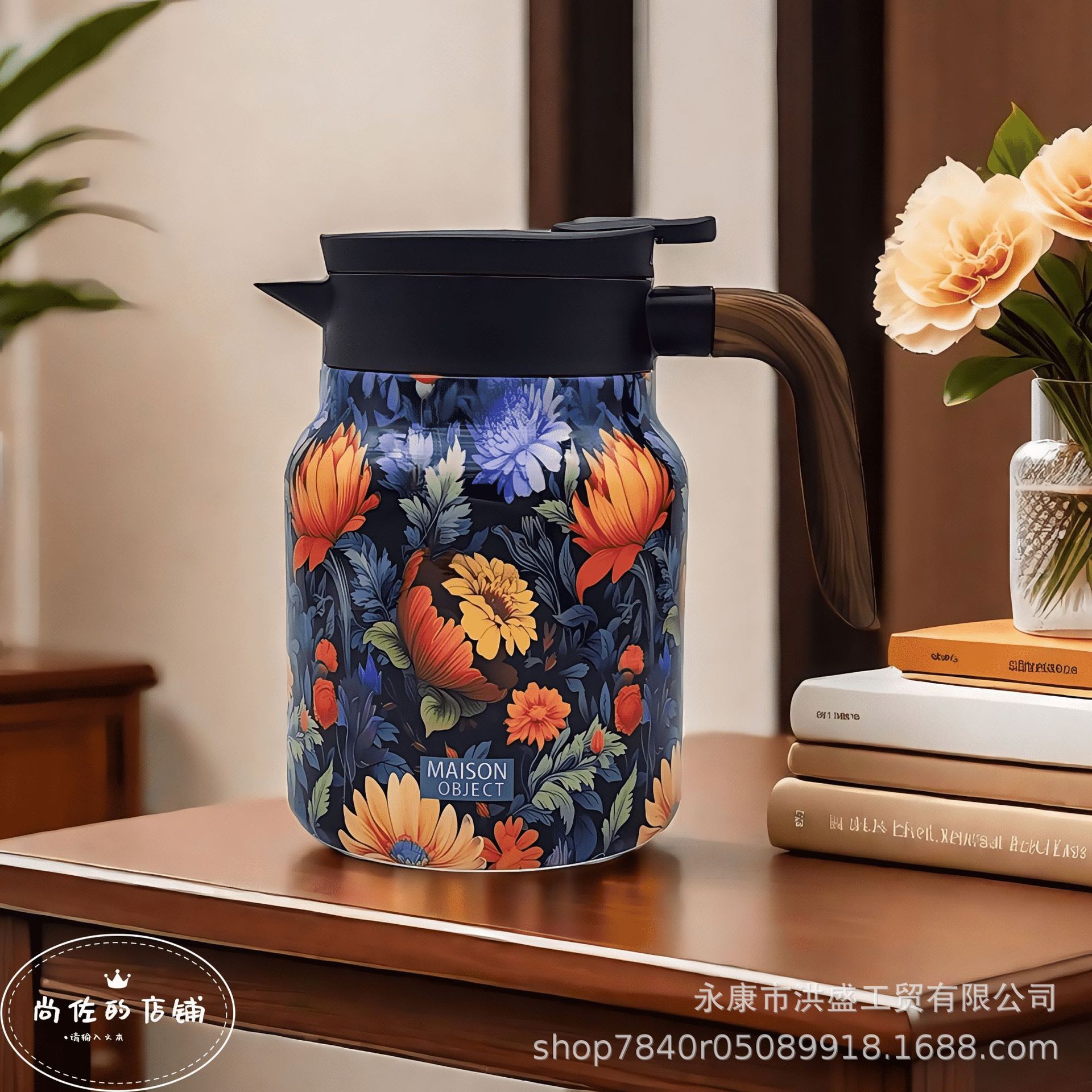 조림 주전자 스테인레스 스틸 열 보존 냄비 차 물 분리 가정용 주전자 간단한 패턴 커피 냄비 대용량 차 냄비스토어 가기