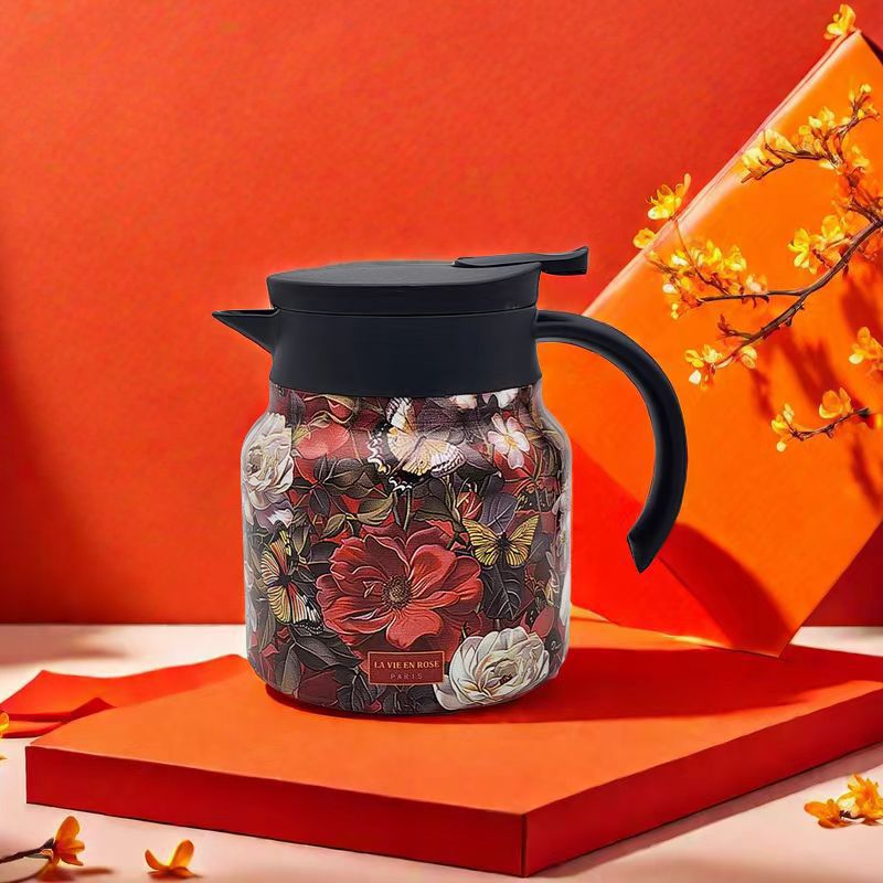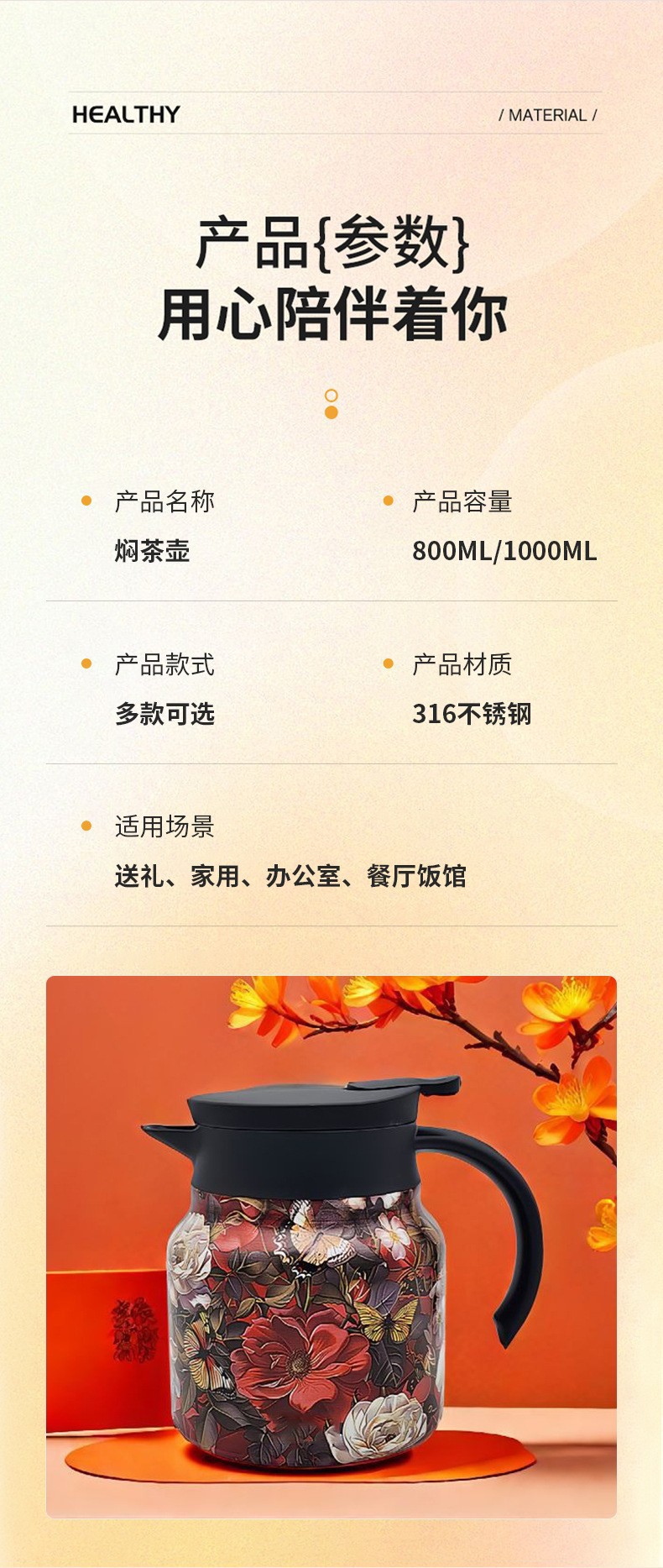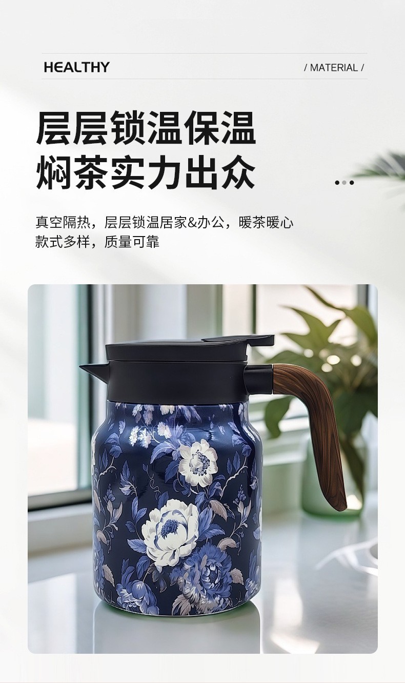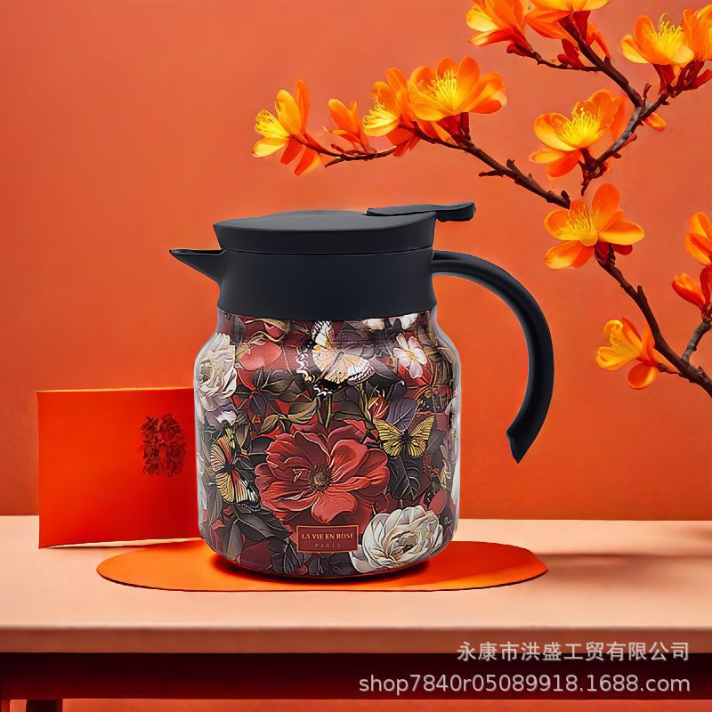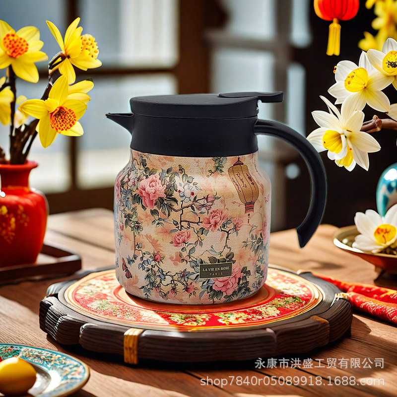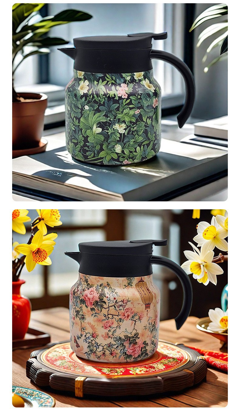 조림 주전자 스테인레스 스틸 열 보존 냄비 차 물 분리 가정용 주전자 간단한 패턴 커피 냄비 대용량 차 냄비스토어 가기