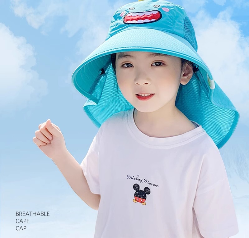 어린이 자외선 차단제 모자 여름 차양 통기성 어부 모자 인쇄 로고 목도리 태양 모자 초등학생 수업 모자스토어 가기