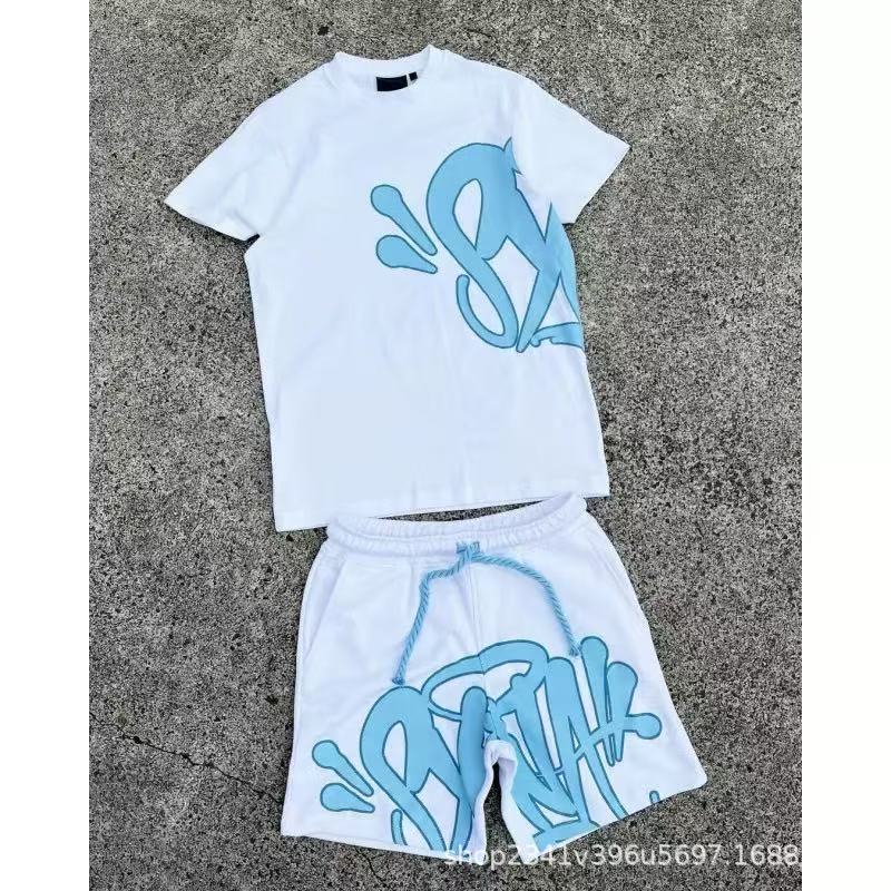 유럽과 미국식 스트리트 힙합 남녀 편지 인쇄 느슨한 반팔 최고 남성 여름 패션 브랜드 캐주얼 스포츠 세트