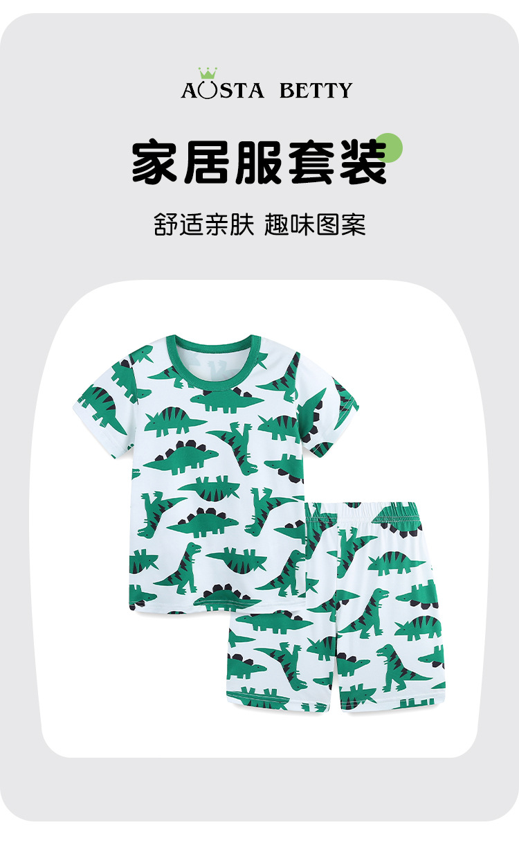 AostaBetty 유럽과 미국 스타일 라운드 넥 캐주얼 어린이 세트 여름 새 소년 반팔 홈 의류 투피스 세트스토어 가기