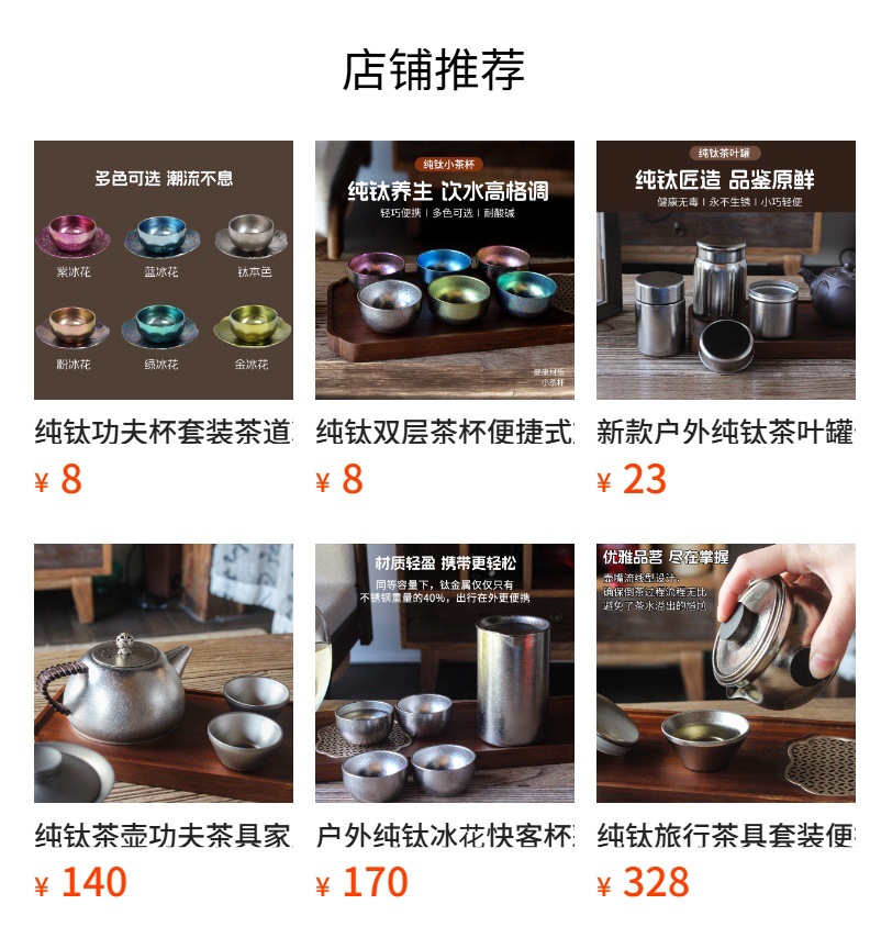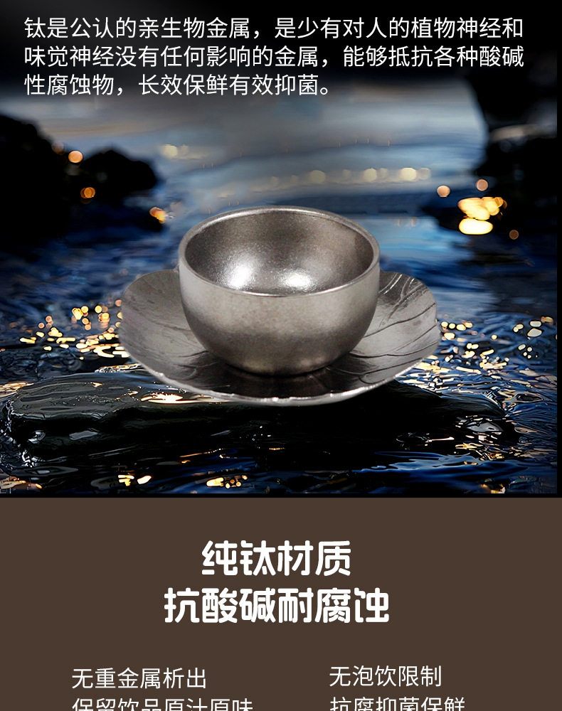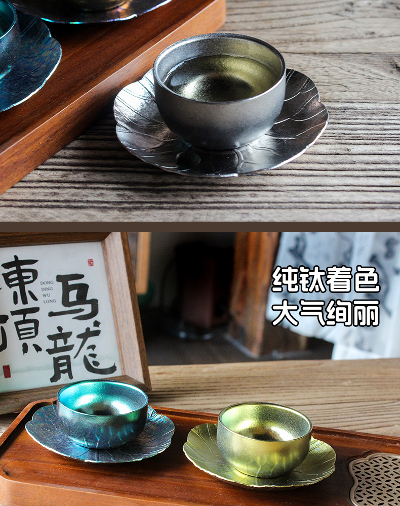 순수한 티타늄 쿵푸 컵 세트 다도 아이스 크리스탈 차 시음 컵 티 컵 홀더 코스터 현대 고급 선물 차 세트스토어 가기