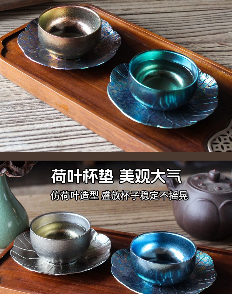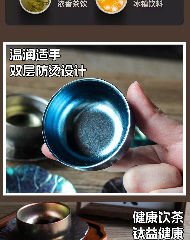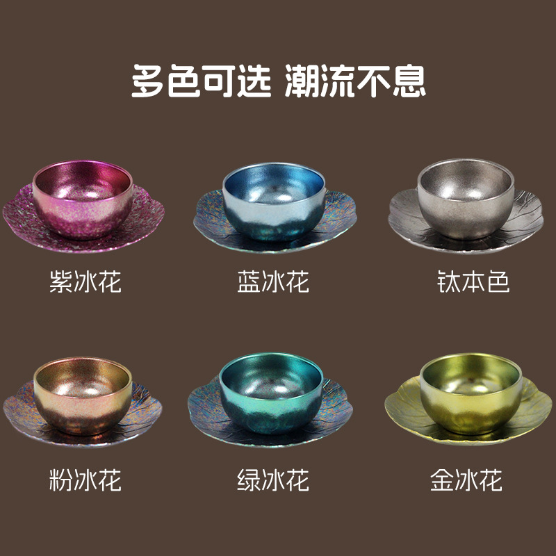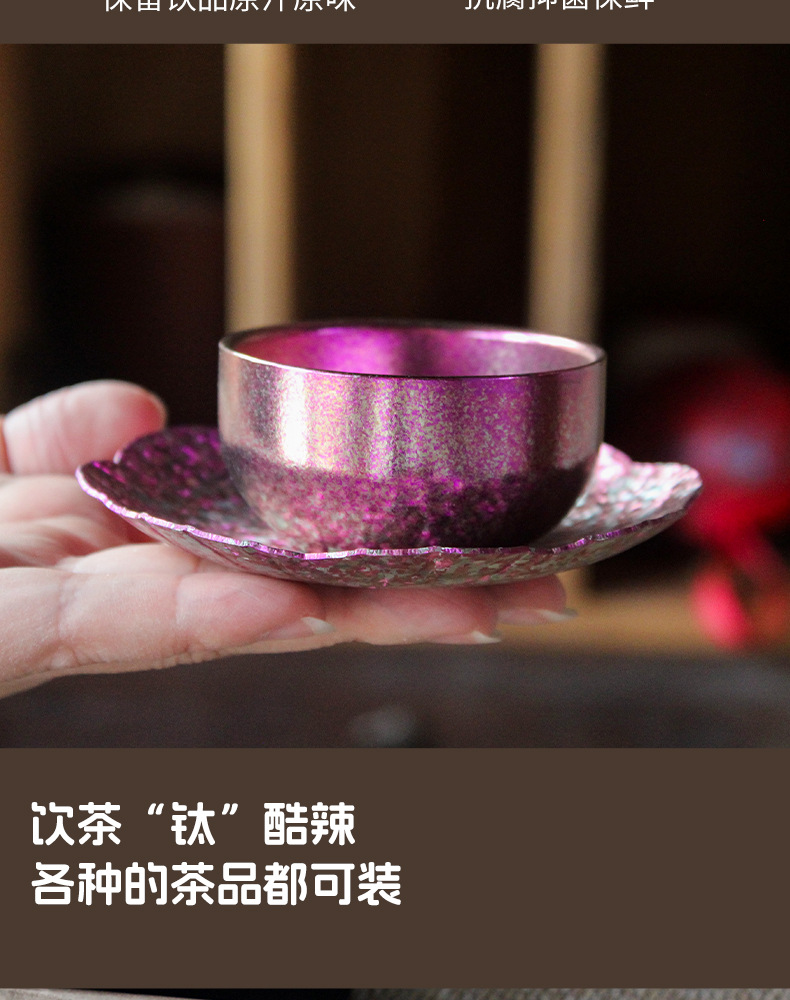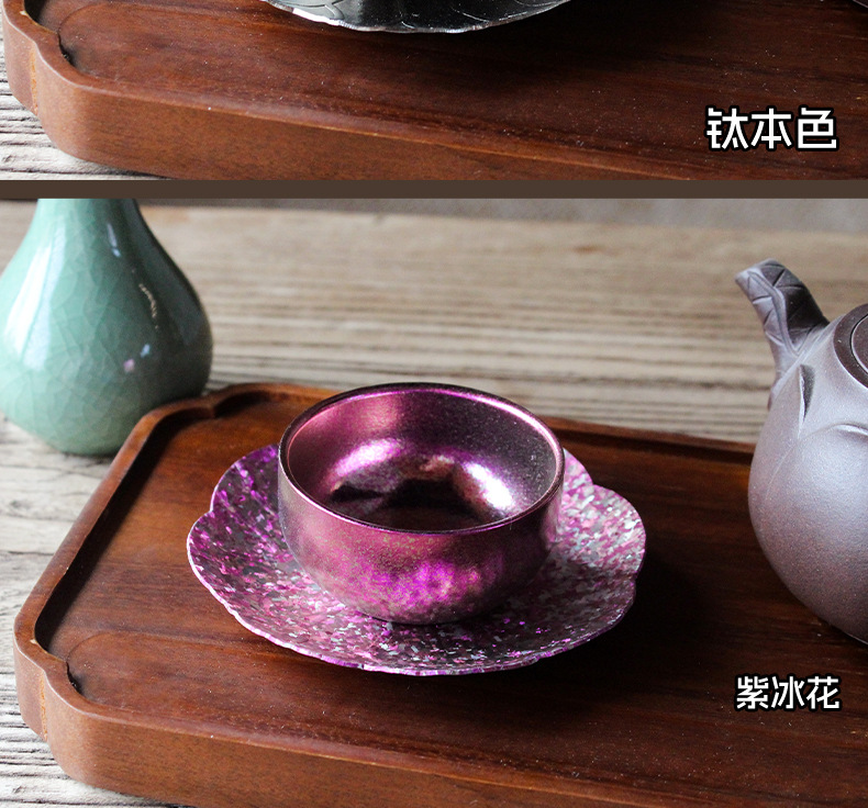 순수한 티타늄 쿵푸 컵 세트 다도 아이스 크리스탈 차 시음 컵 티 컵 홀더 코스터 현대 고급 선물 차 세트