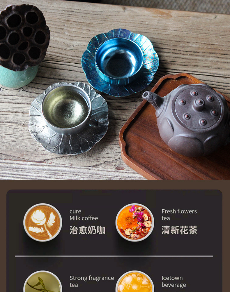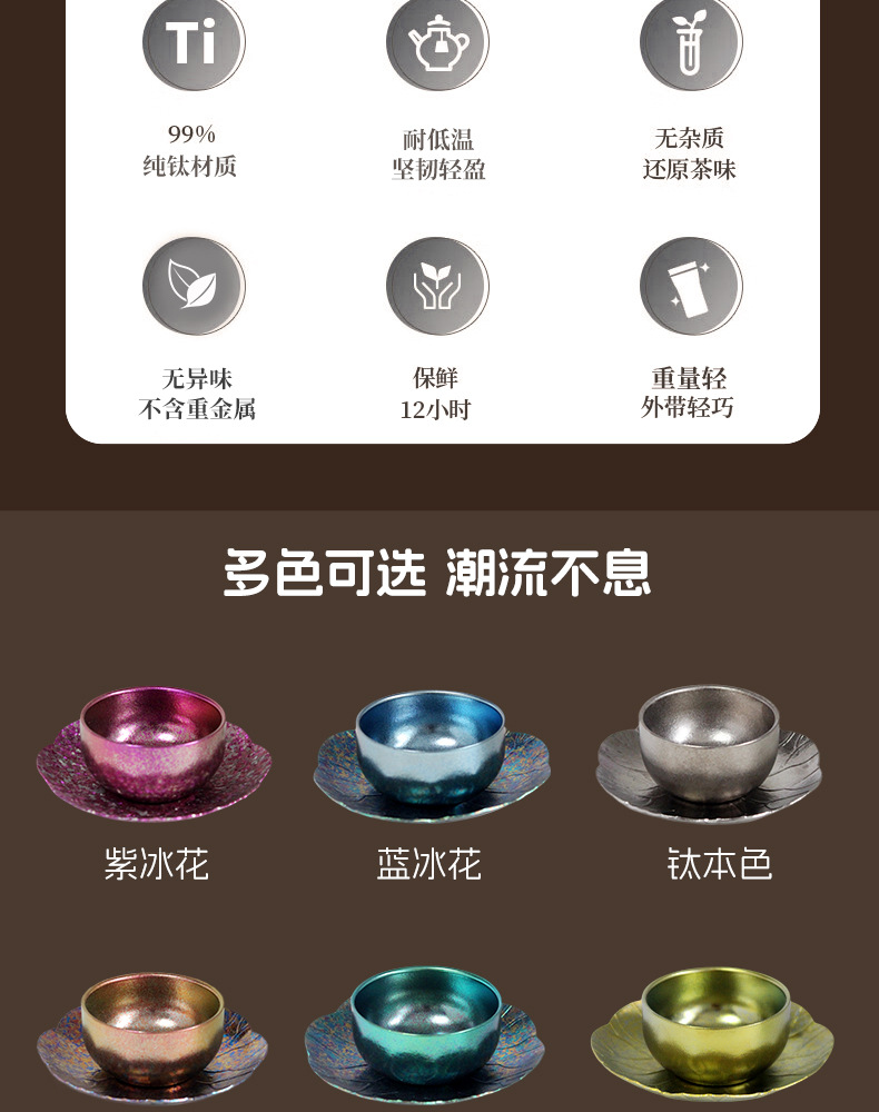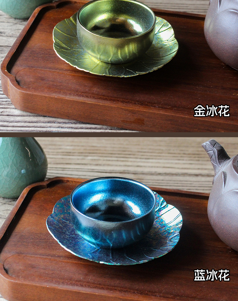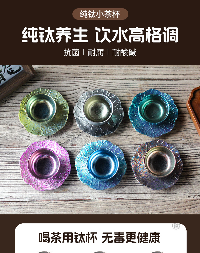 순수한 티타늄 쿵푸 컵 세트 다도 아이스 크리스탈 차 시음 컵 티 컵 홀더 코스터 현대 고급 선물 차 세트