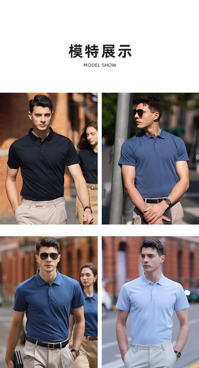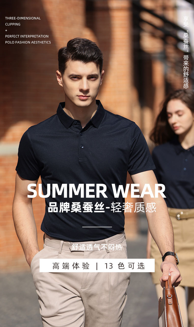 여름 하이 엔드 뽕나무 실크 단색 짧은 소매 폴로 셔츠 맞춤형 남성 옷깃 티셔츠 바지 맞춤 인쇄 로고스토어 가기