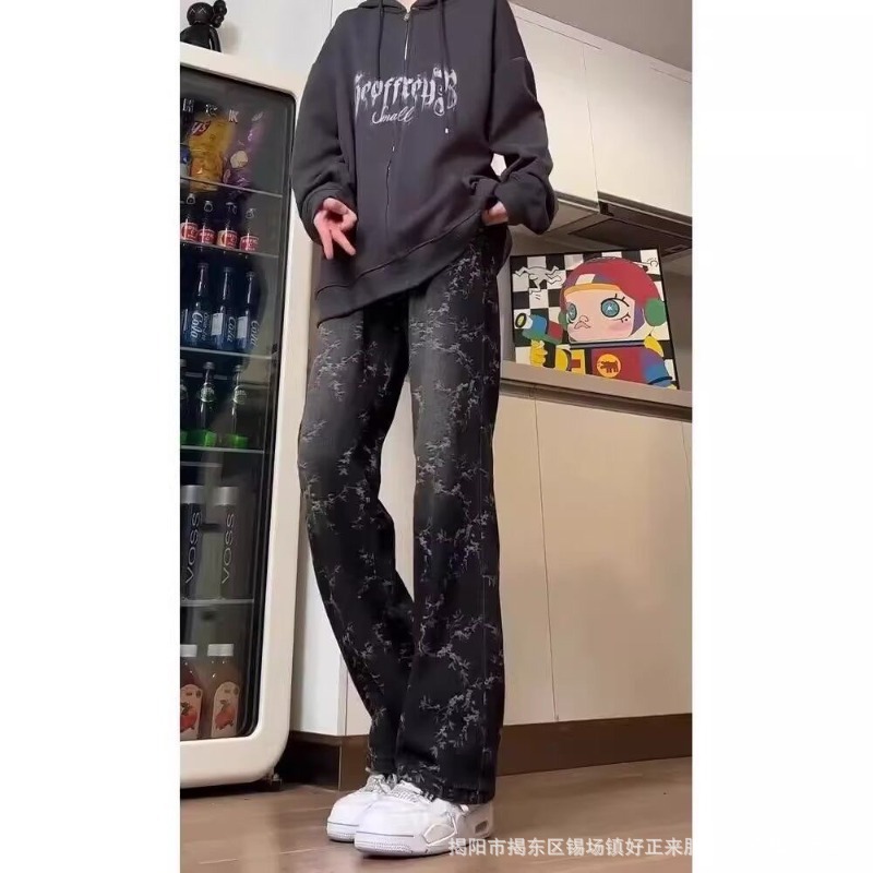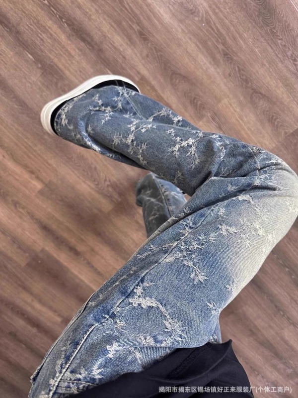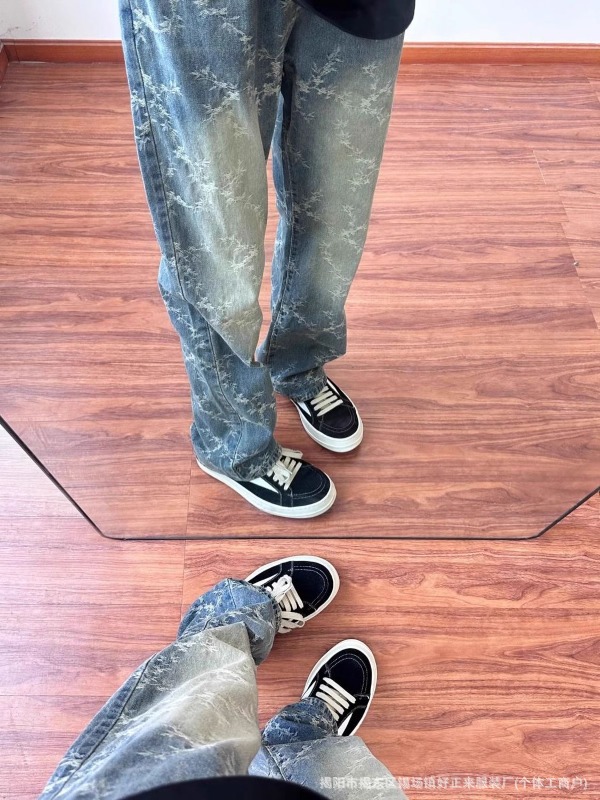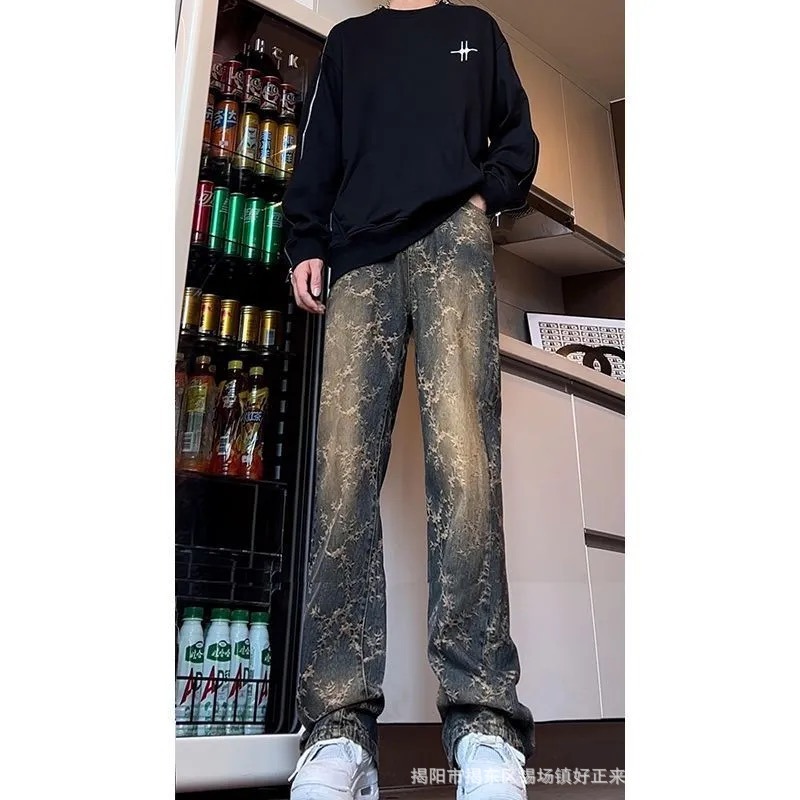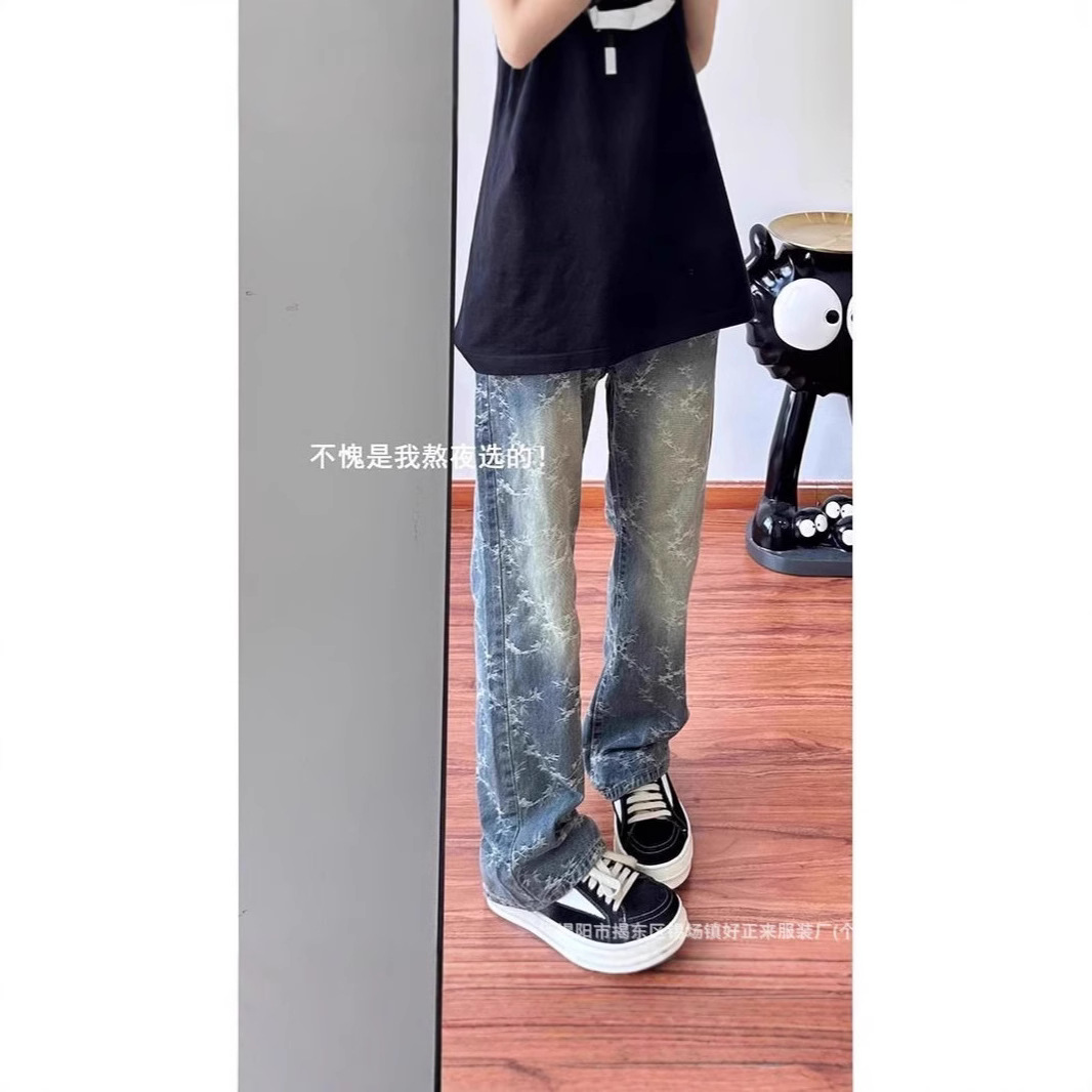 자카드 청바지 남성 가을 미국 스타일 레트로 하이 스트리트 팬츠 봄과 가을 십대 좁은 스트레이트 바지스토어 가기