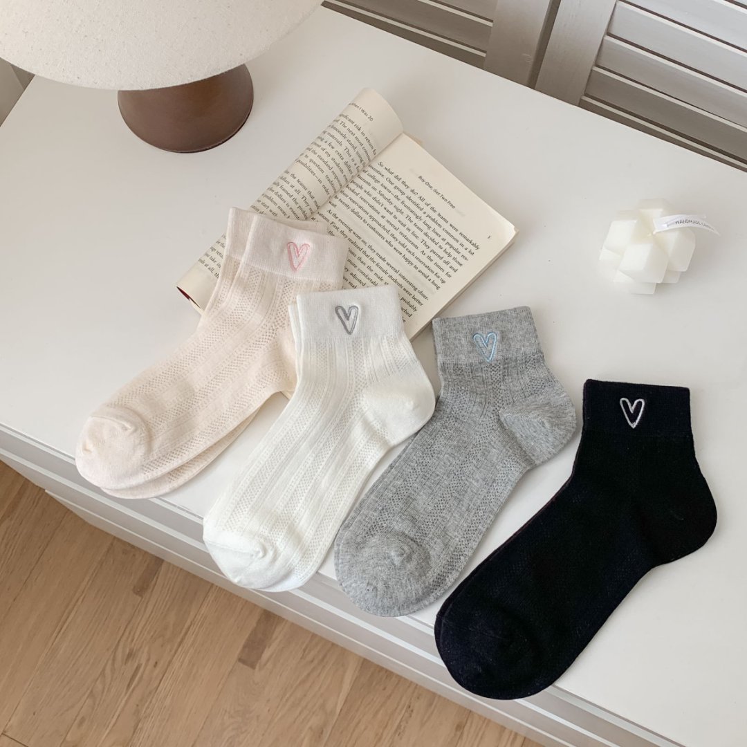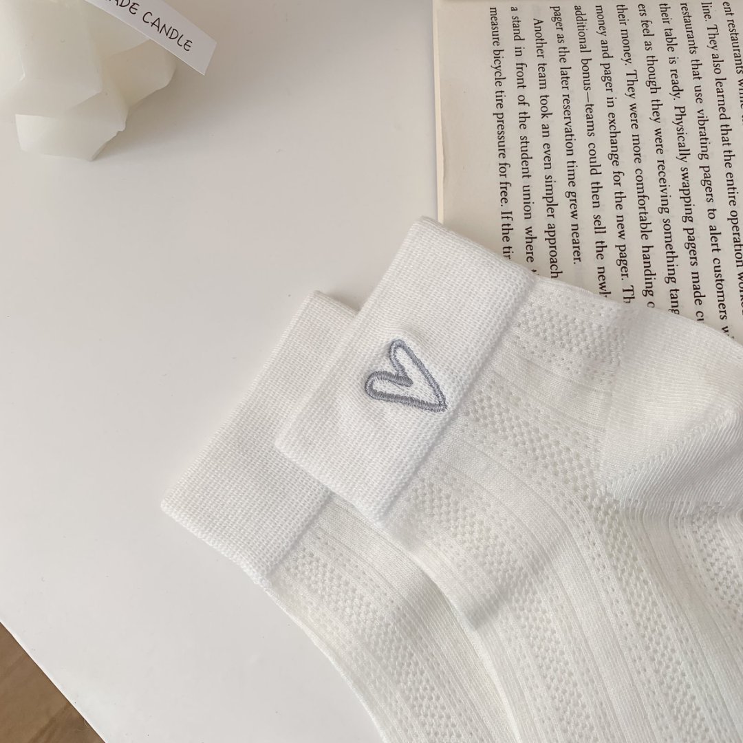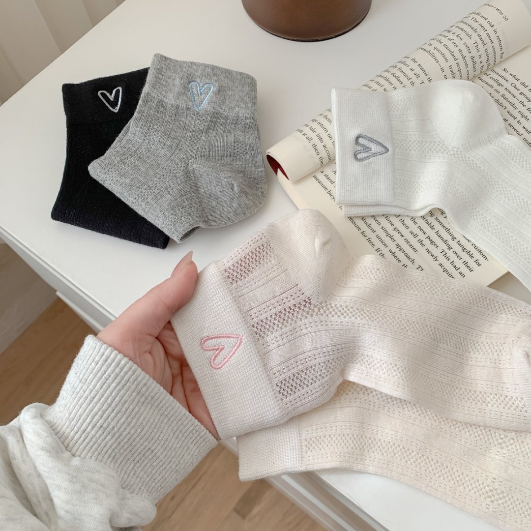 25 봄과 여름 짧은 튜브 여성 양말 메쉬 통기성 사랑 자수 캐주얼 한국 스타일 솔리드 컬러 여성 양말 하이 찾고 다목적 양말스토어 가기