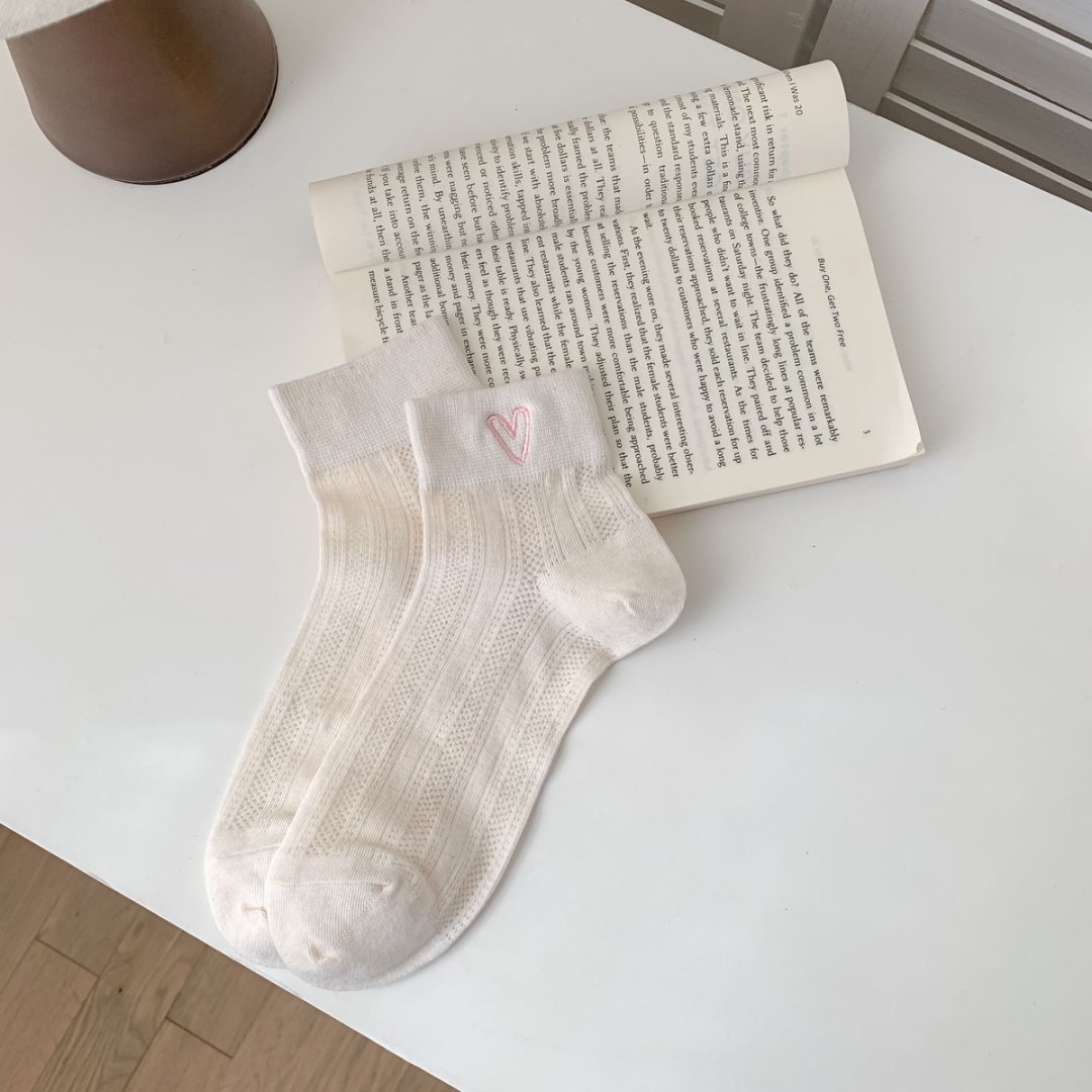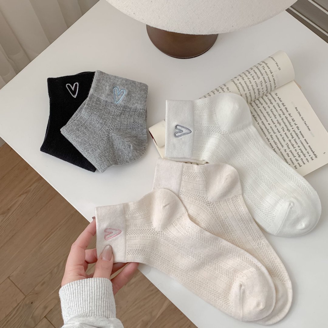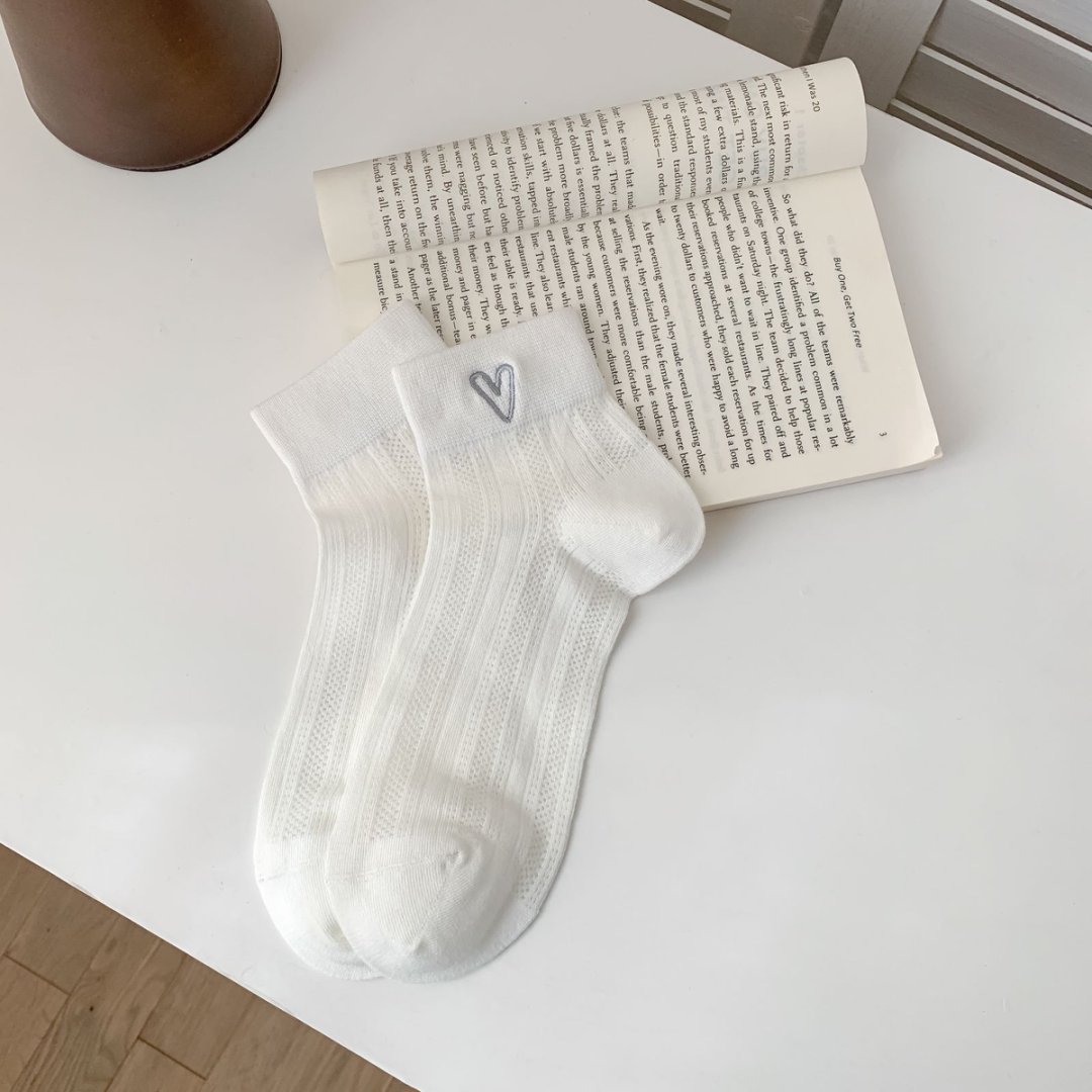 25 봄과 여름 짧은 튜브 여성 양말 메쉬 통기성 사랑 자수 캐주얼 한국 스타일 솔리드 컬러 여성 양말 하이 찾고 다목적 양말스토어 가기