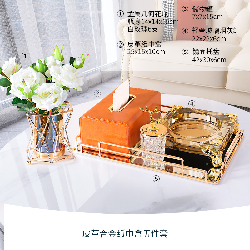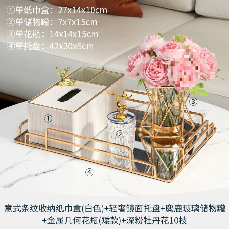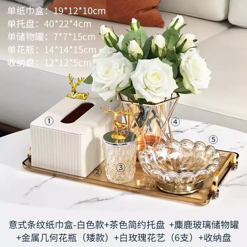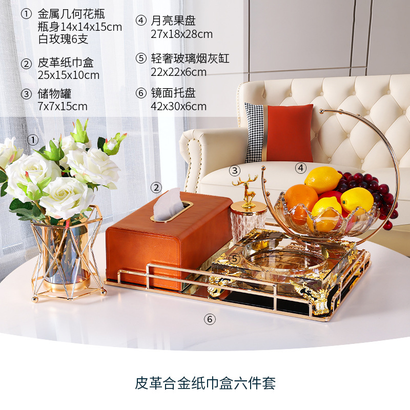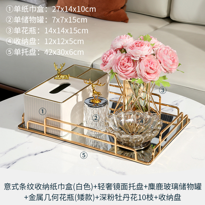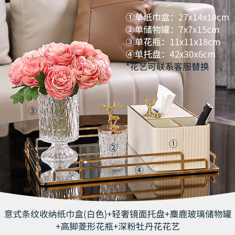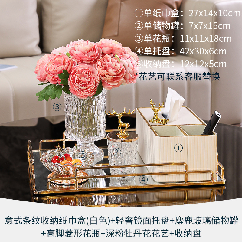 • 6종 세트 - 라이트 럭셔리 티슈 박스 세트 + 모란 다이아몬드 꽃병 세트 + 수납 트레이 + 문 과일 트레이
