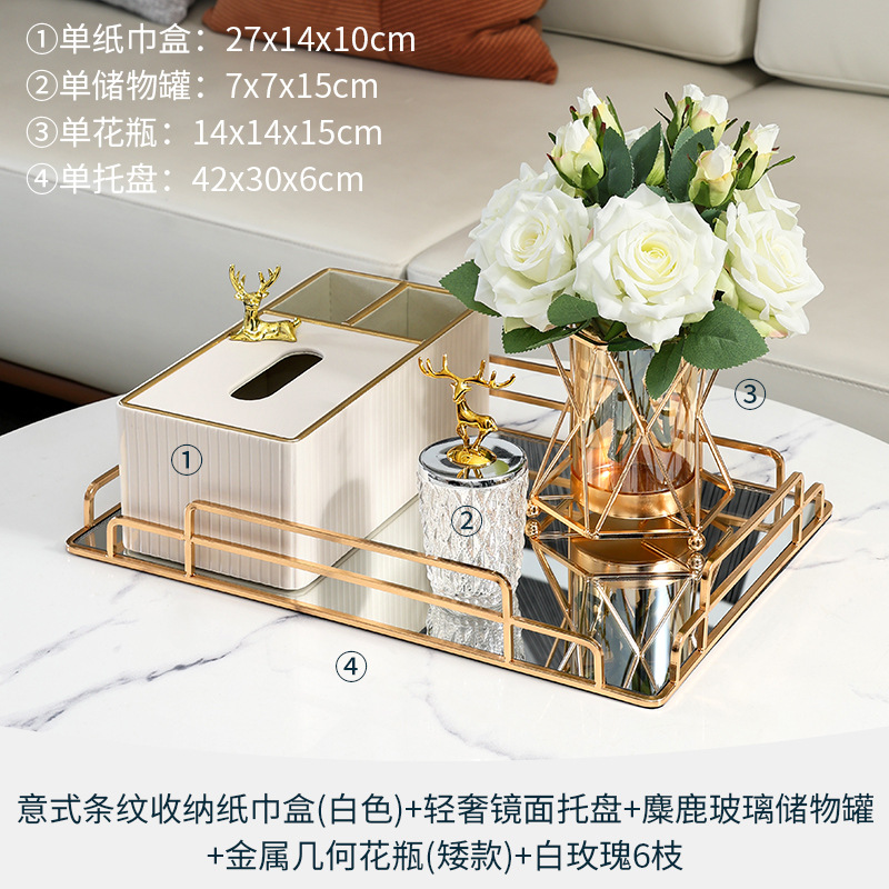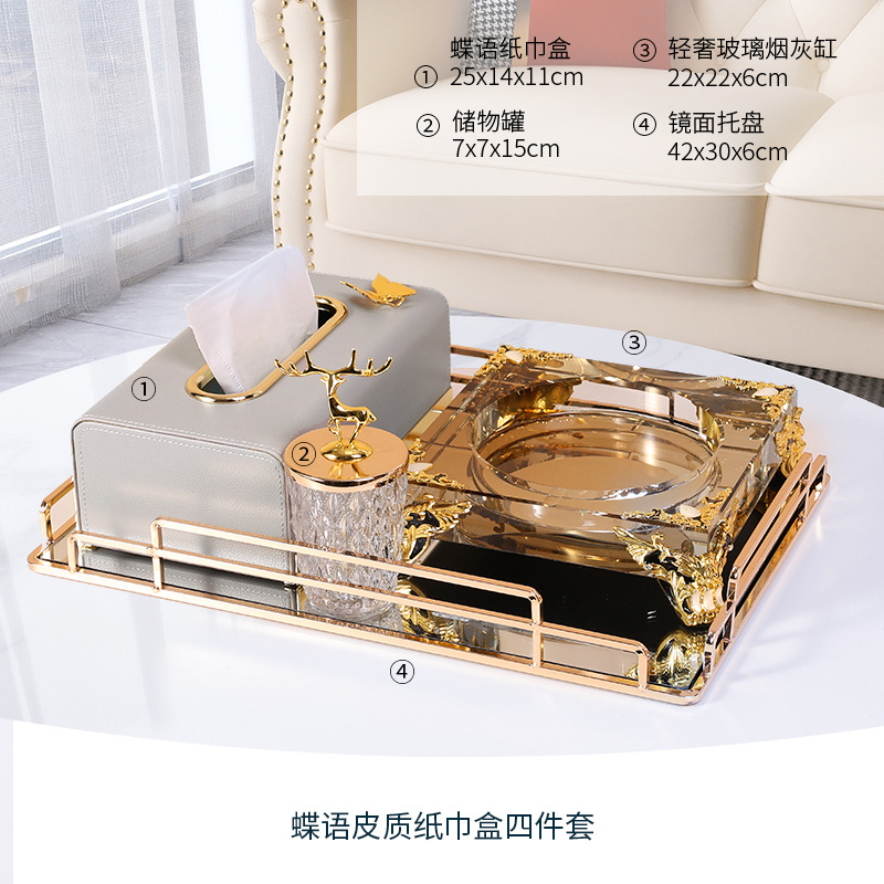 • 3종 세트 - 라이트 럭셔리 티슈 박스 세트 [수납 티슈 박스 + 거울 트레이 + 엘크 수납 용기]