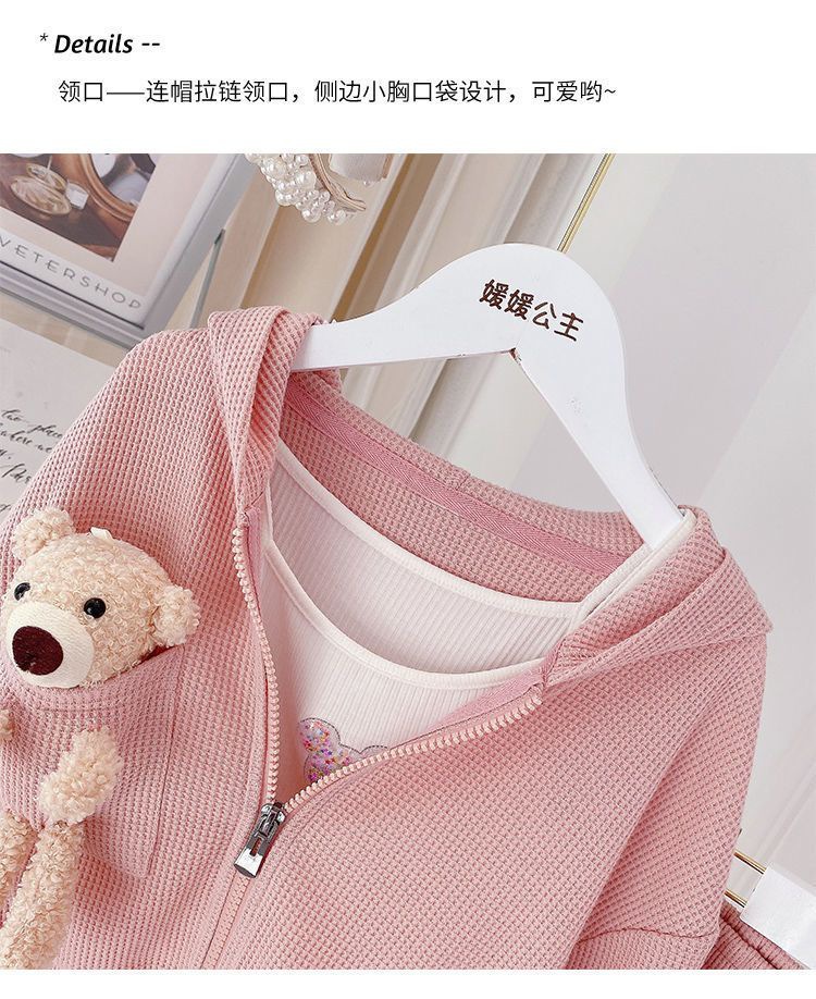 봄 가을 소녀 세트 서양식 어린이 성격 유행 한국 스타일 3 차원 만화 후드 자켓 유행 스포츠 바지스토어 가기